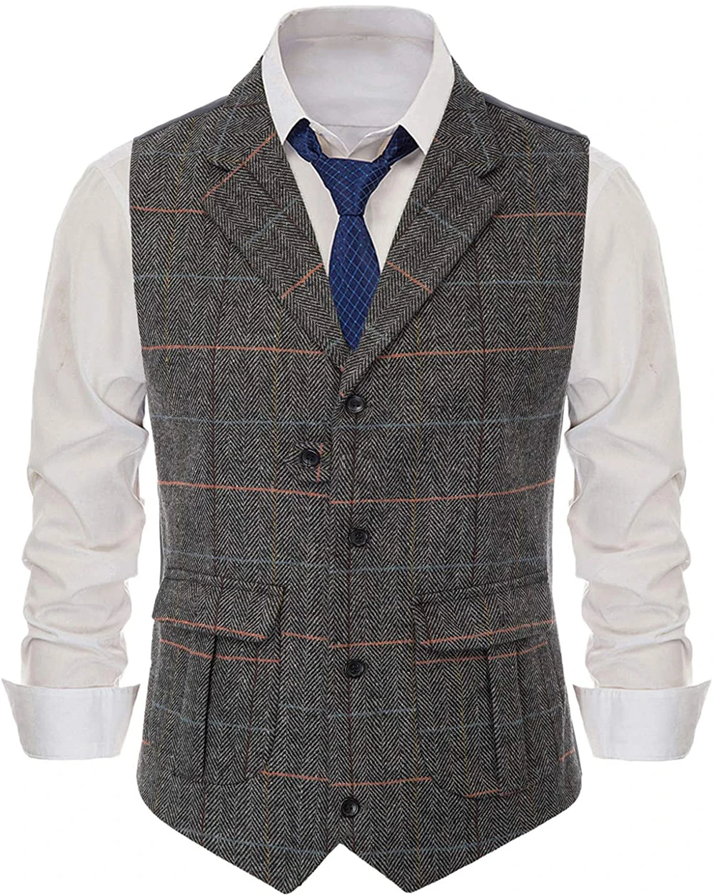 Новый клетчатый костюм, жилет для мужчин, шерстяной твидовый жилет,...