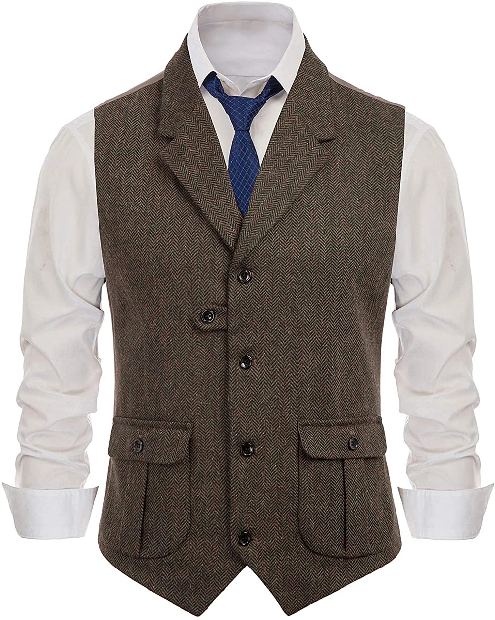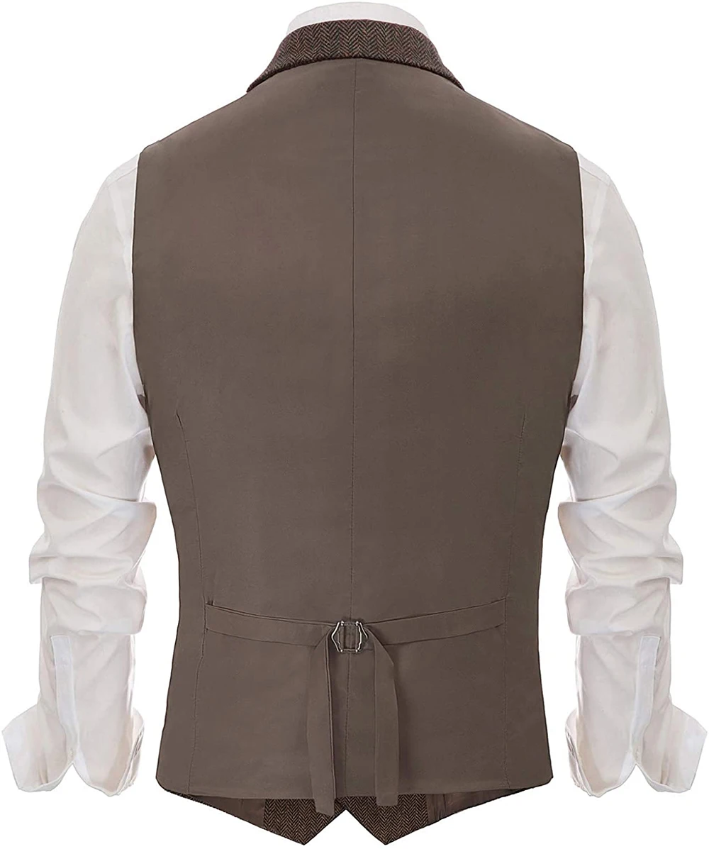 Мужской костюмный жилет с V-образным вырезом, шерстяной коричневый ...
