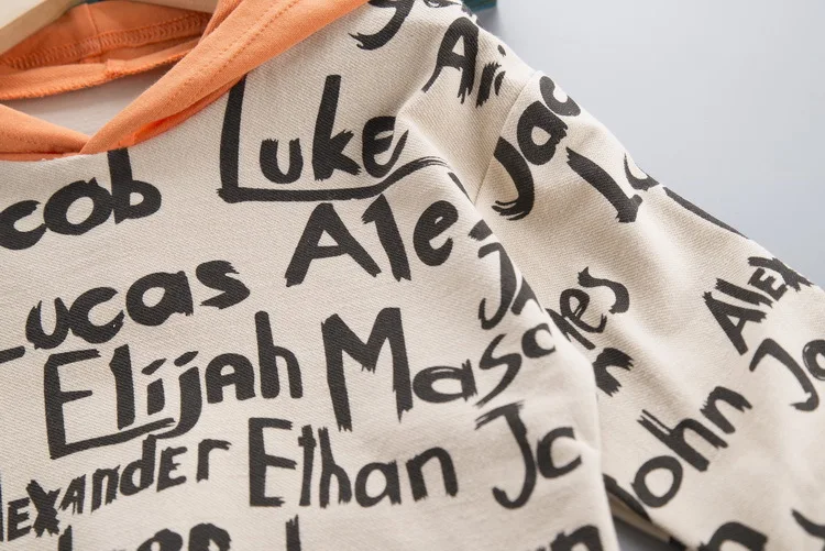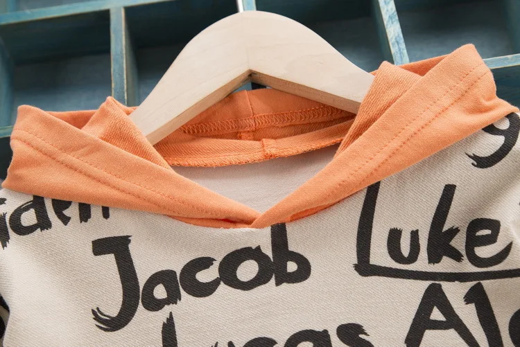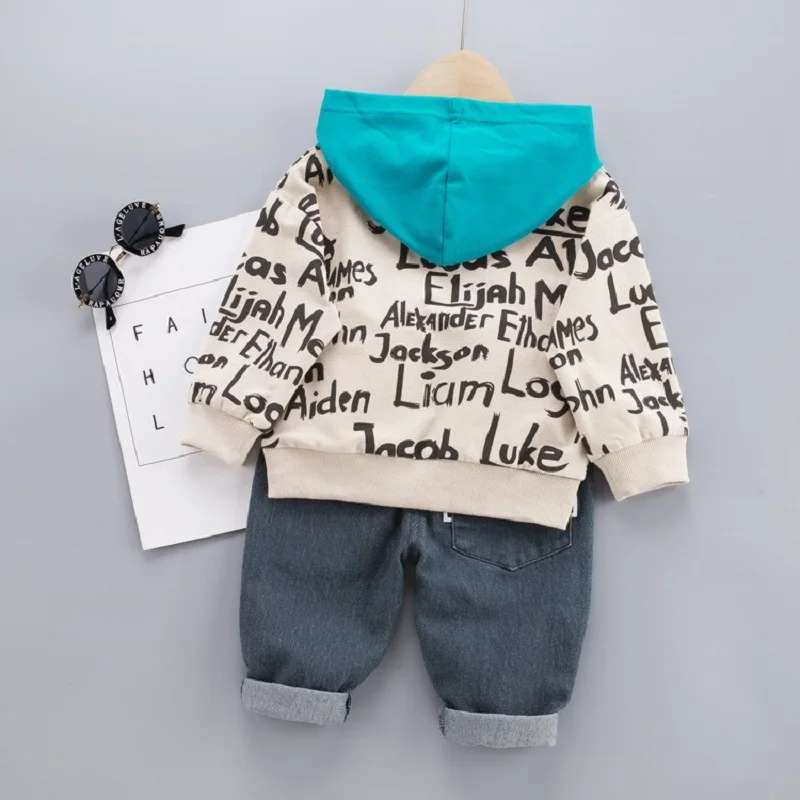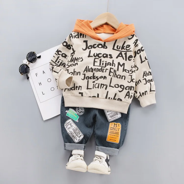 Детский спортивный костюм для мальчиков, топ с капюшоном и принтом букв, джинсы, повседневная одежда для мальчиков из 2 предметов, спортивный костюм