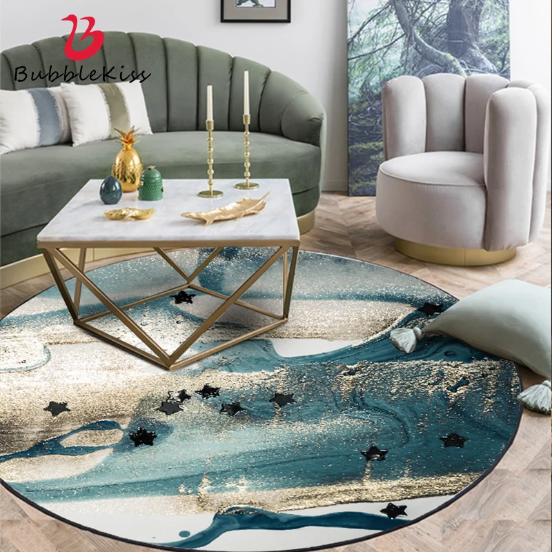 Круглый коврик и ковровые покрытия Bubble Kiss для гостиной в современном стиле, синие коврики с абстрактным рисунком, модные мягкие Противоскользящие коврики для ног