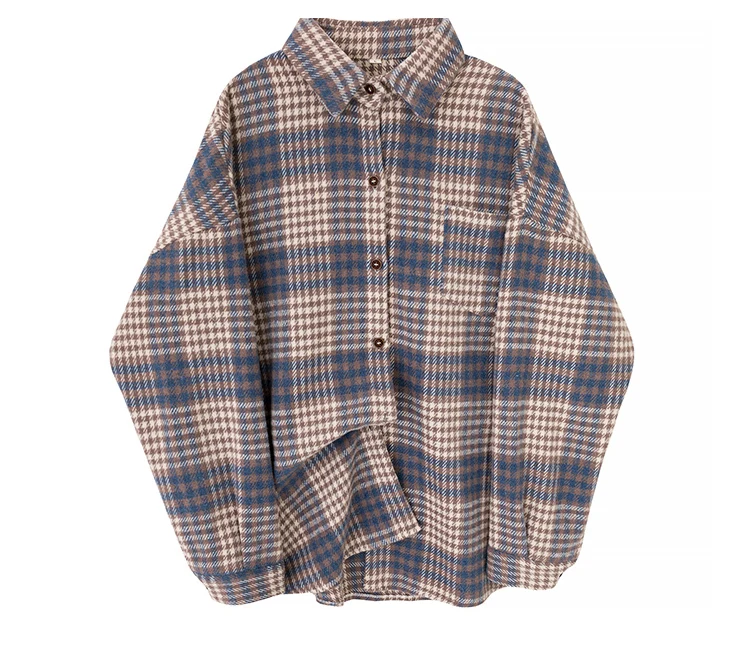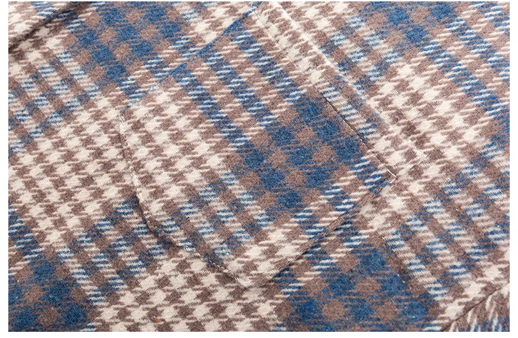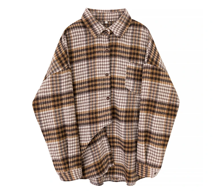 Женская шерстяная рубашка в клетку, с карманами и отложным воротником, зимняя, теплая