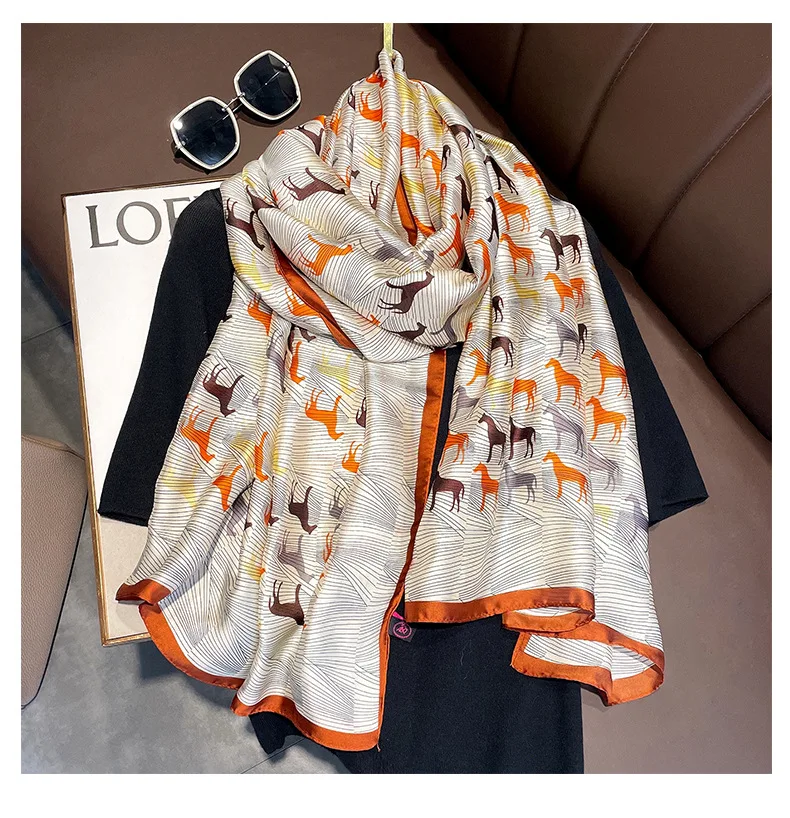 Шелковый шарф, роскошный брендовый хиджаб, модный фуляр, Женская ба...