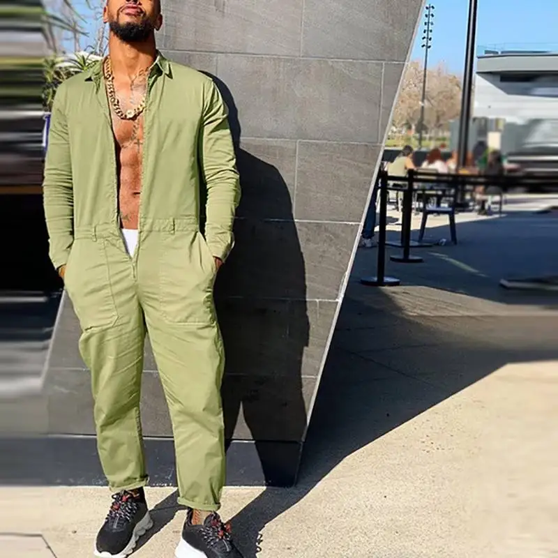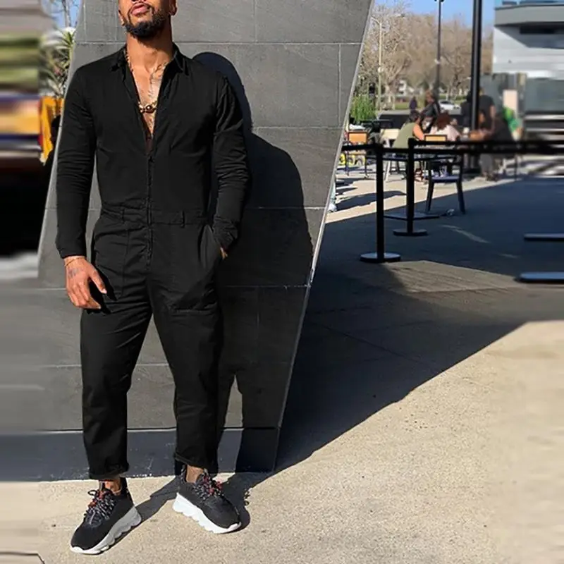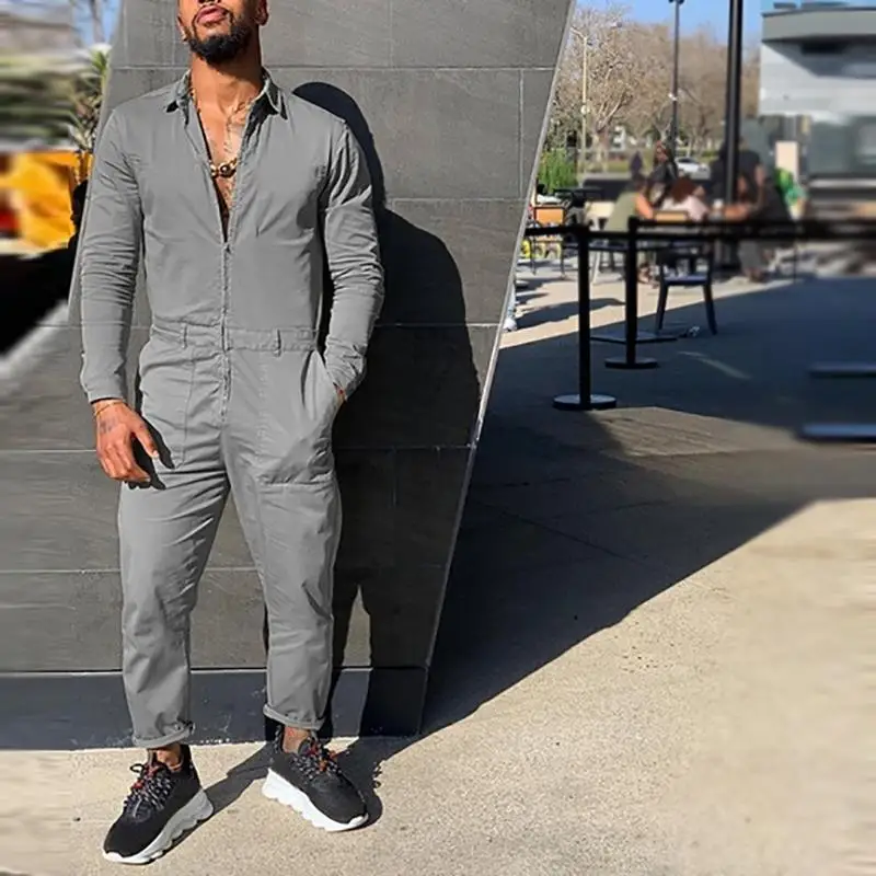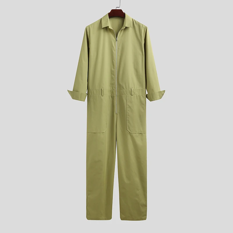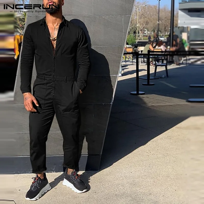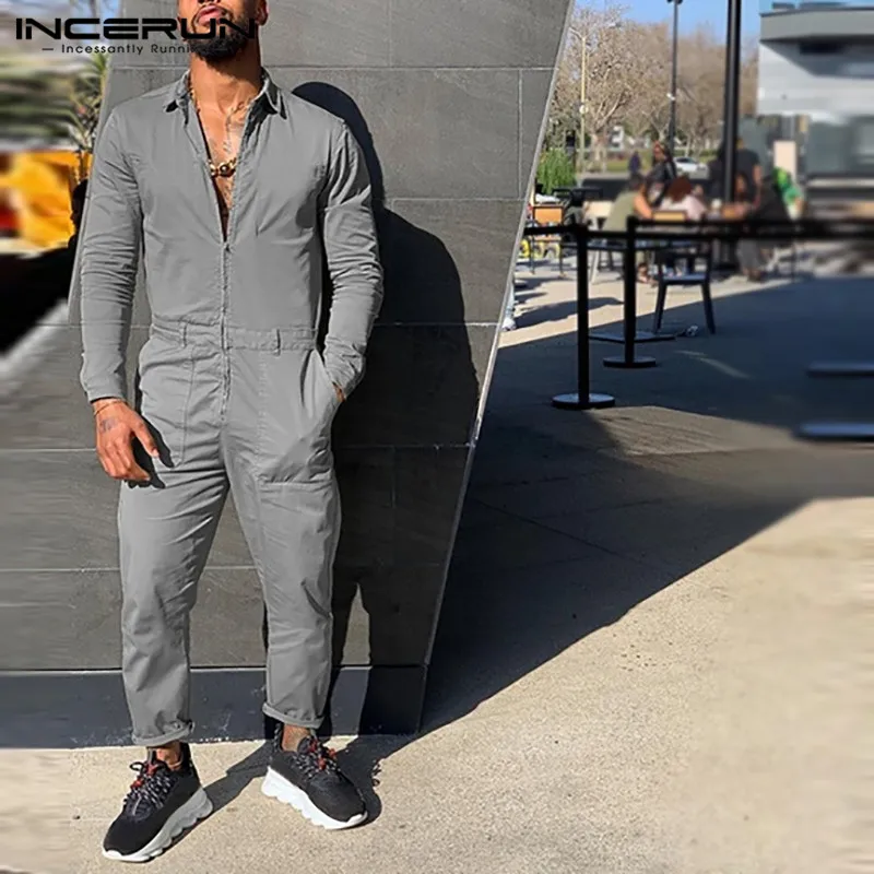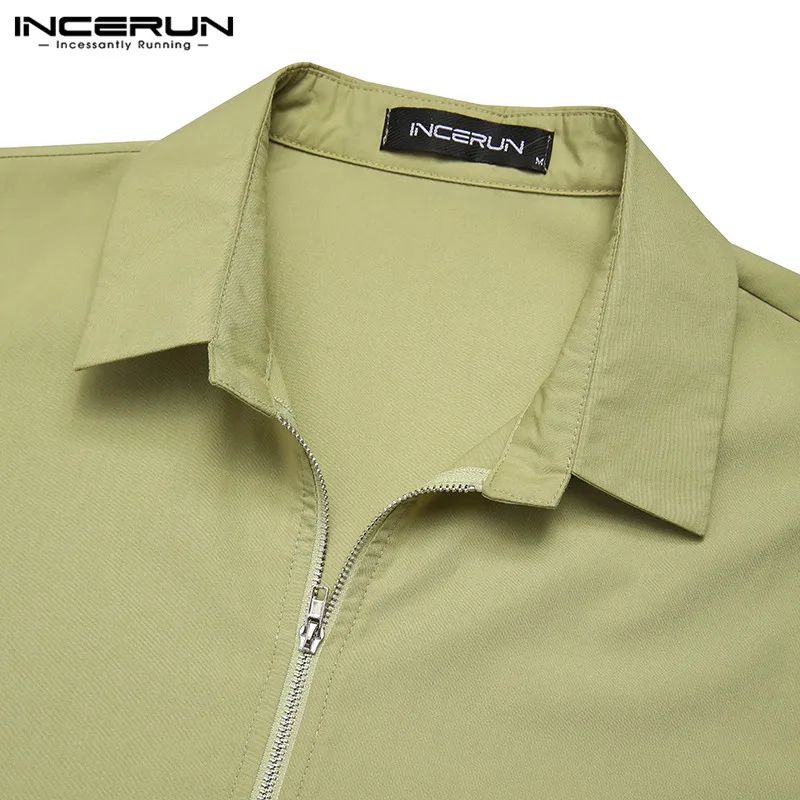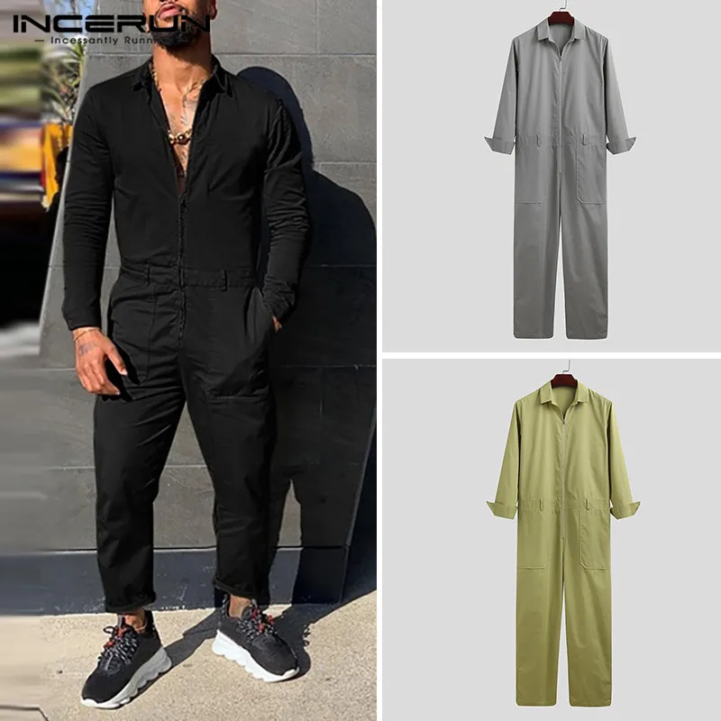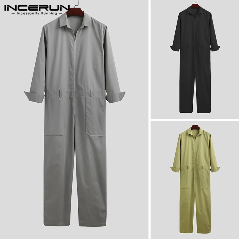 Мужские спортивные джоггеры на молнии, комбинезоны, модные однотонные комбинезоны INCERUN, комбинезоны с длинным рукавом и отложным воротником, мужские бриджи
