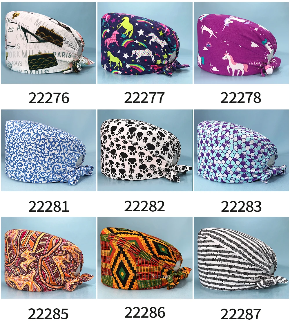 Шапки унисекс с мультяшным принтом для стоматолога, скрабы для врачей и медсестер, 100% хлопок, кепки для ухода за операционной, клиник для домашних животных