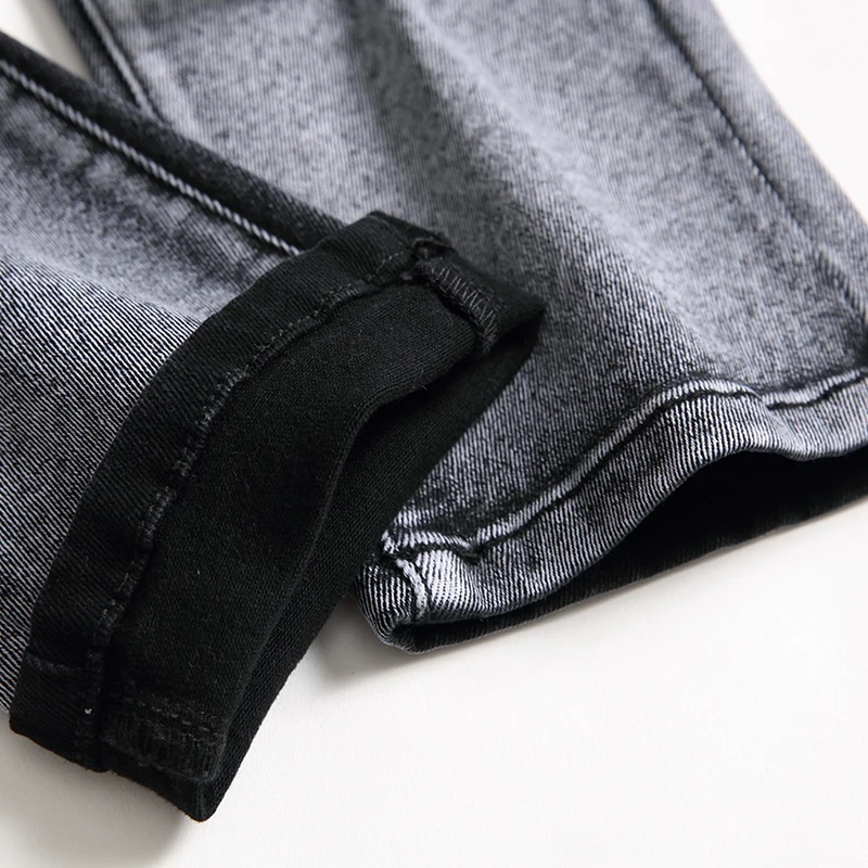 Джинсы мужские Стрейчевые узкие, модные брендовые плиссированные мотоциклетные брюки, черные