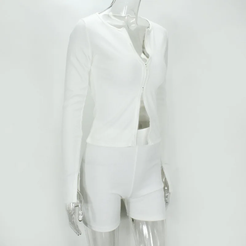 Женский трикотажный спортивный костюм Sibybo, комплект из двух предметов на молнии, Осенние футболки и байкерские шорты, черная повседневная спортивная одежда