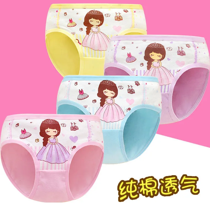 Трусики для девочек, хлопковые, треугольные, с героями мультфильмов, 4 шт., Детские Боксеры