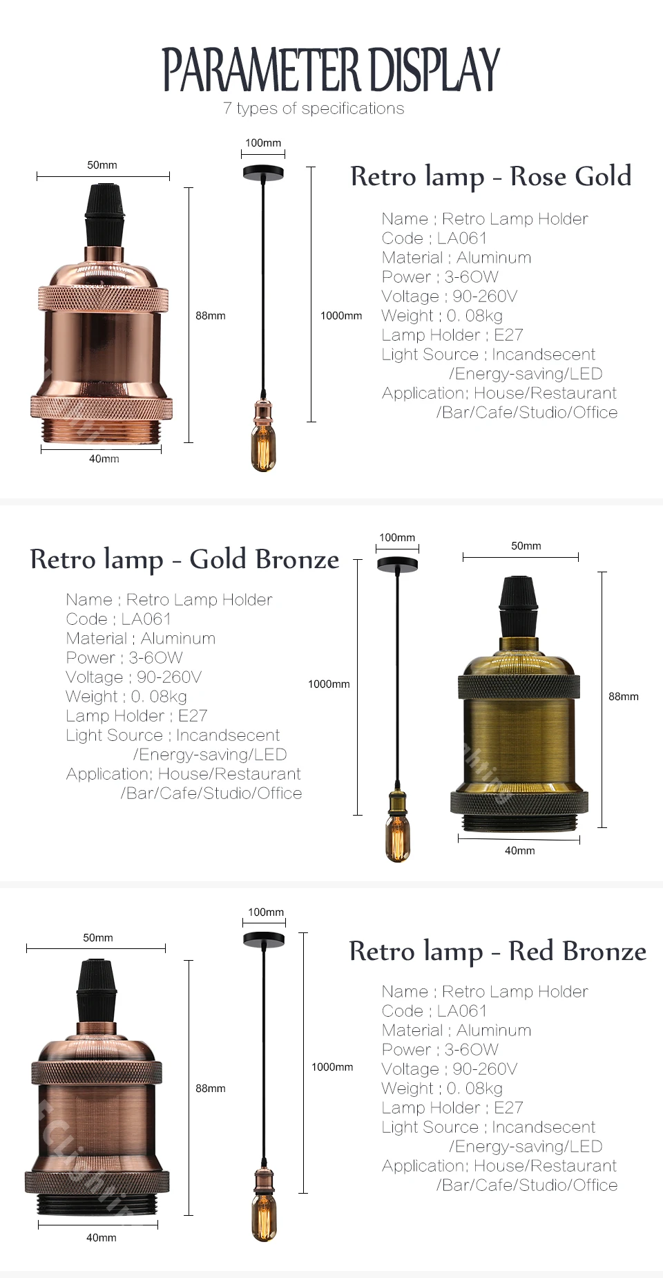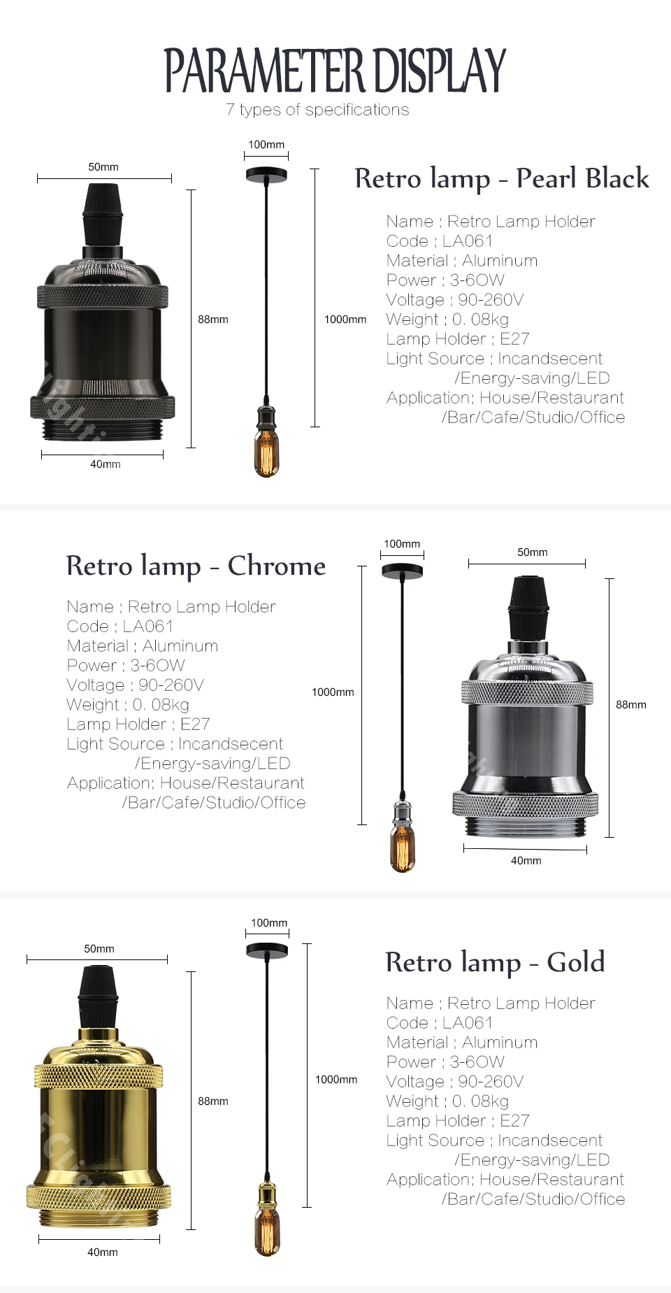 Современные алюминиевые подвесные светильники E27 держатель лампы 110 В 220 светодиодный лампы накаливания Винтаж Ретро лампа Эдисона декоративный держатель лампы
