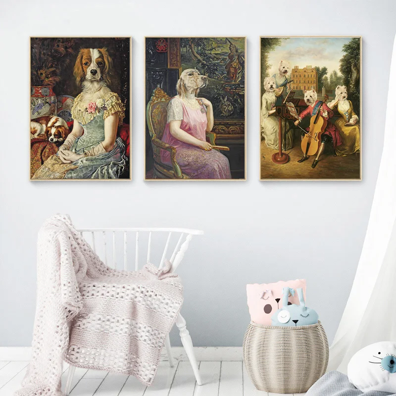 Картина на холсте в стиле ретро, животное, собака, леди, украшение для дома, фон для гостиной, настенное искусство, подвесная картина без рамки