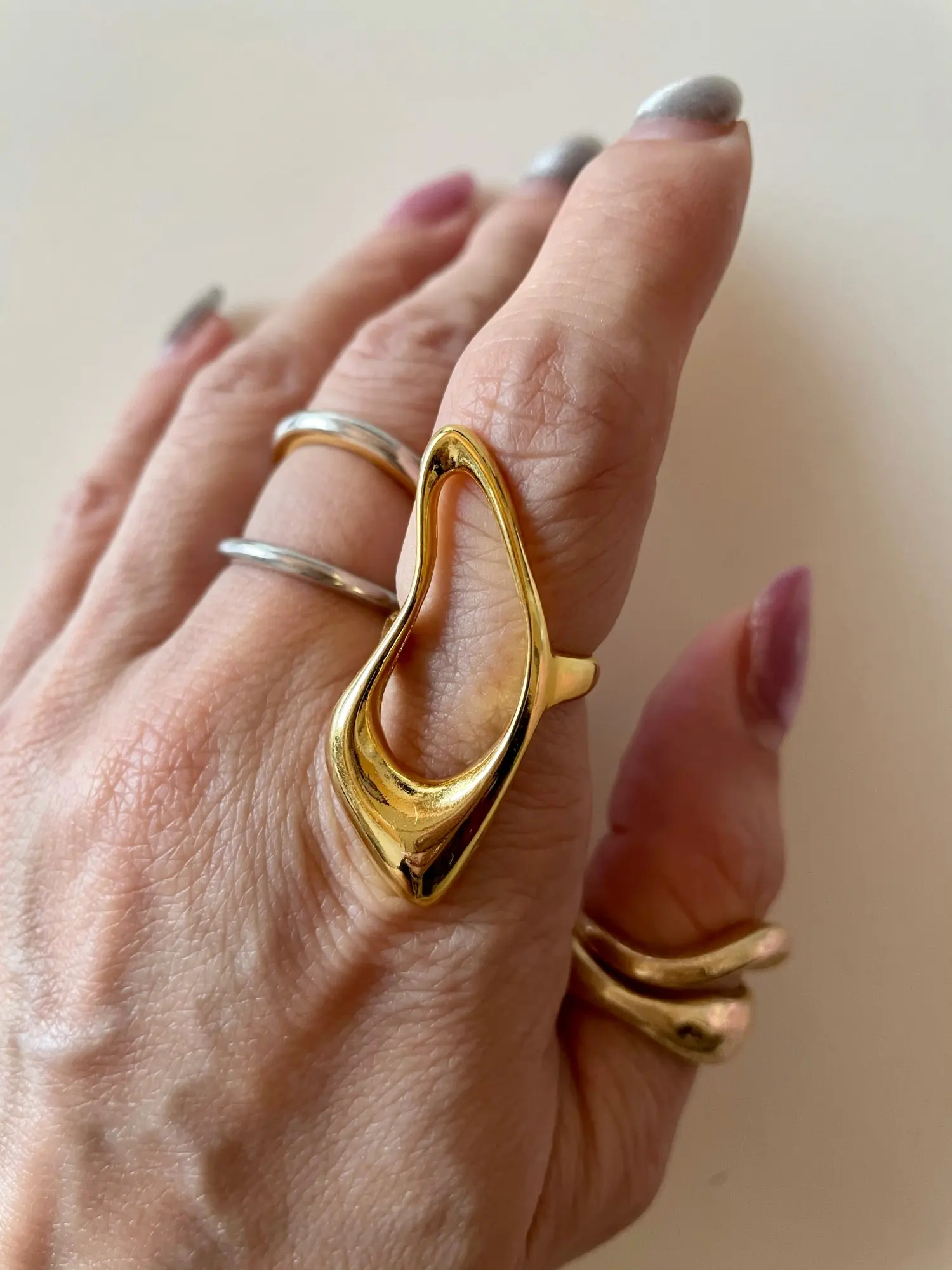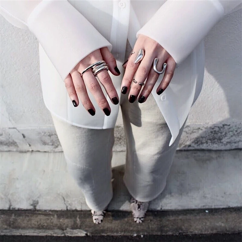 HUANZHI 2020 простое увеличенное глянцевое металлическое кольцо Геометрическая Капля воды Открытое кольцо на палец для женщин девушек ювелирные изделия для вечеринок