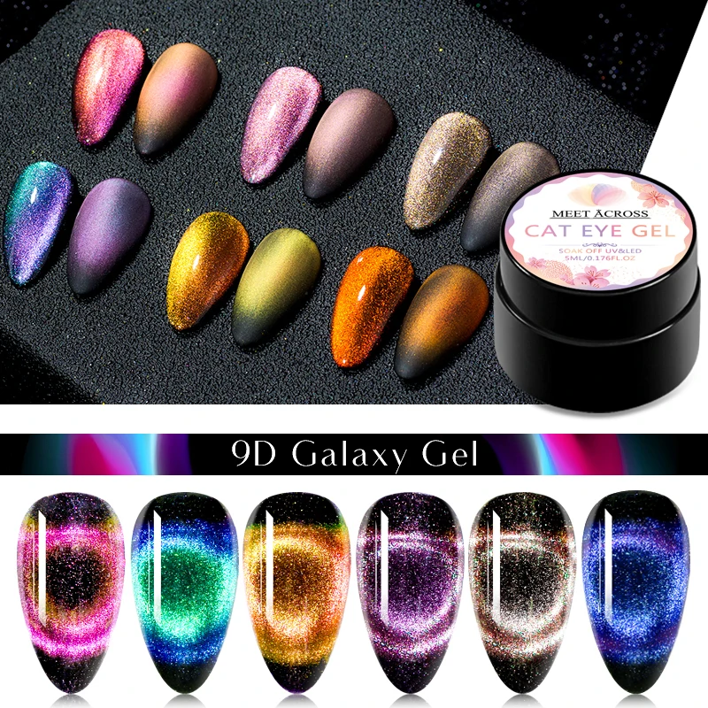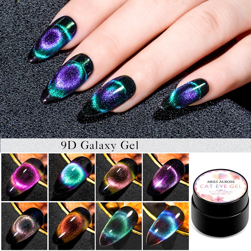 Магнитный отмачиваемый гель-лаки MEET ACROSS 9D Chameleon Гель-лак для ногтей с эффектом кошачий глаз, УФ-гель для ногтей, сияющий, 5 мл, черная основа