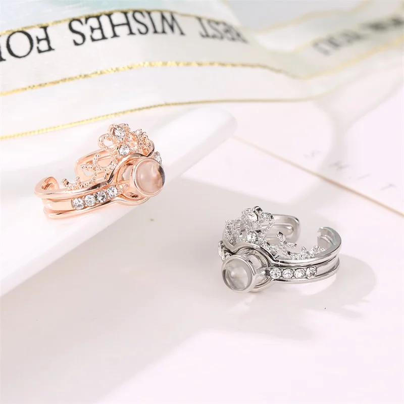 Корона влюбленных Стразы Медь розовое золото посеребренные Проекционные Открытые Кольца для женщин