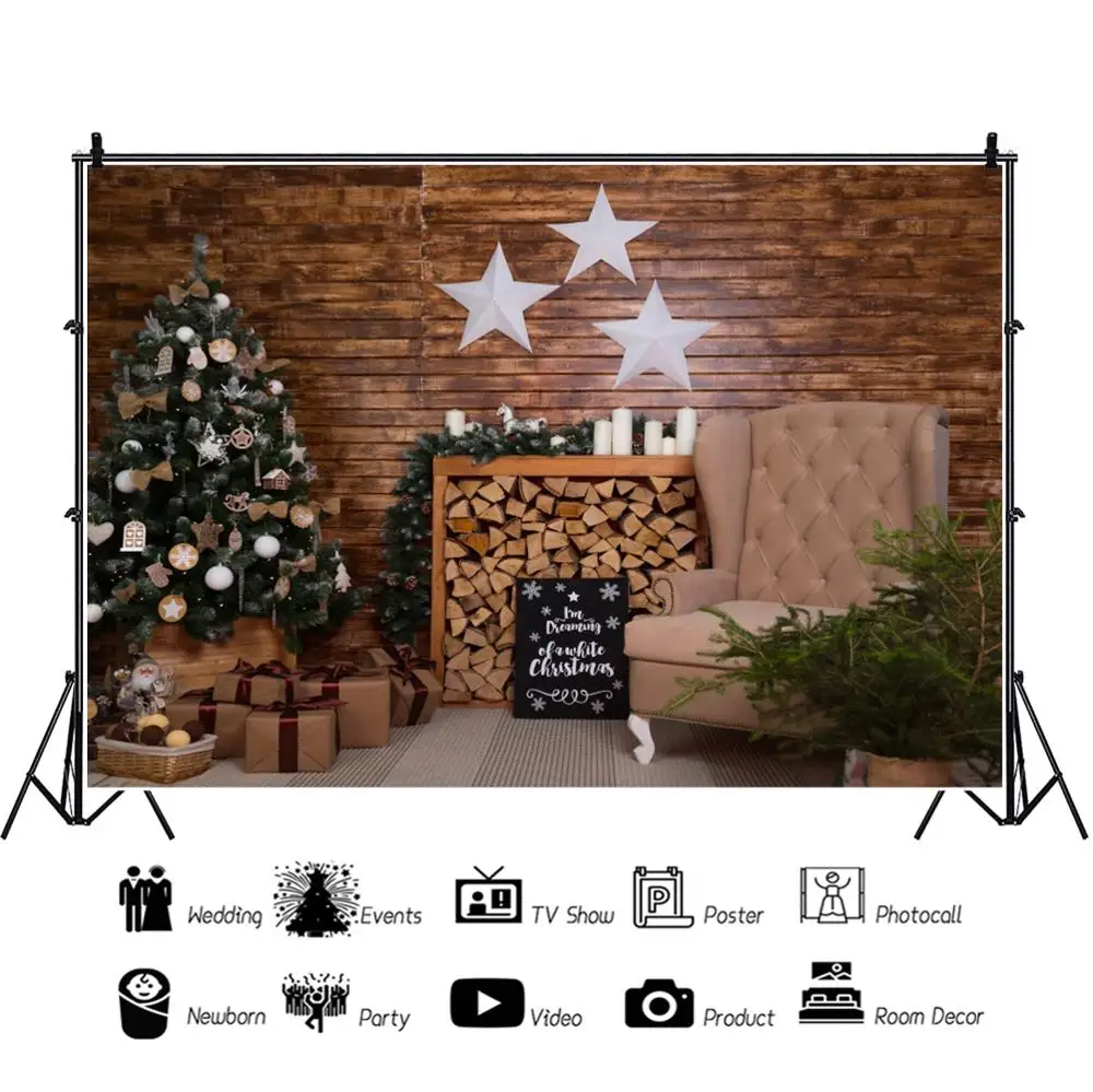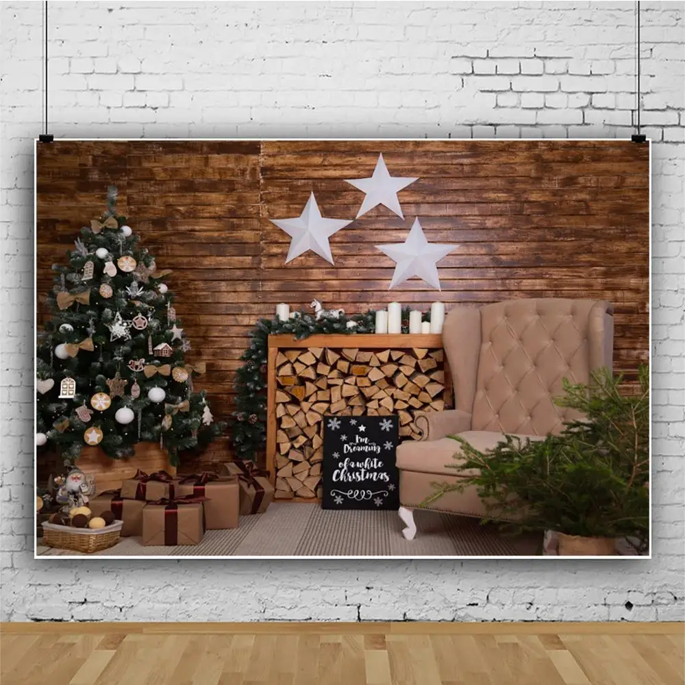 Laeacco Рождественская елка яркое место белая пентаграмма гирлянда искусственная марионетка диван свеча подарок деревянный фон для фотографии