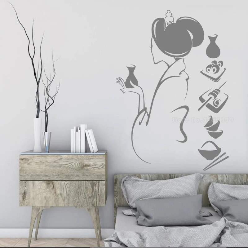 Японская японская виниловая наклейка на стену в стиле аниме гейши, ...