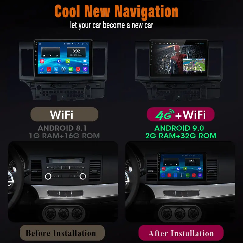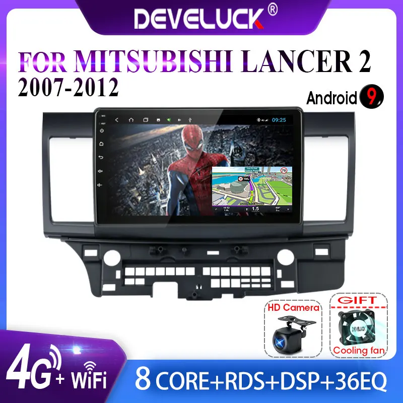 Автомагнитола для Mitsubishi Lancer 2007-2012, стерео-система на Android 9,0, 4G NET + Wi-Fi, 2 + 32 ГБ, с экраном 10 дюймов, с RDS, DSP, видеоплеером, типоразмер 2 Din