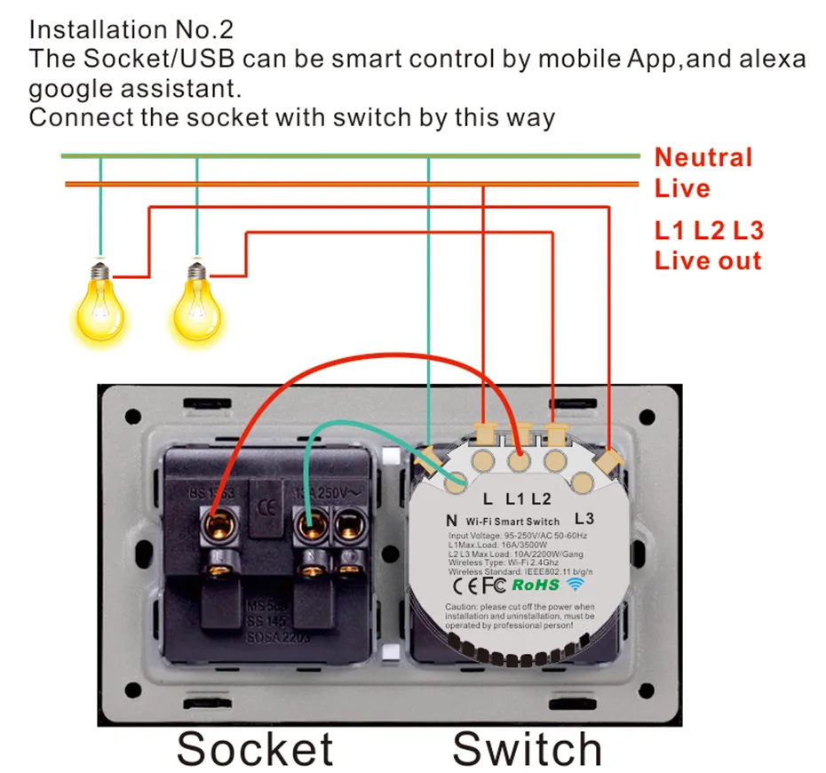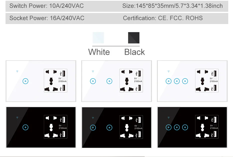Переключатель Wi-Fi на 1-2-3 клавиши с универсальной двойной USB-розеткой