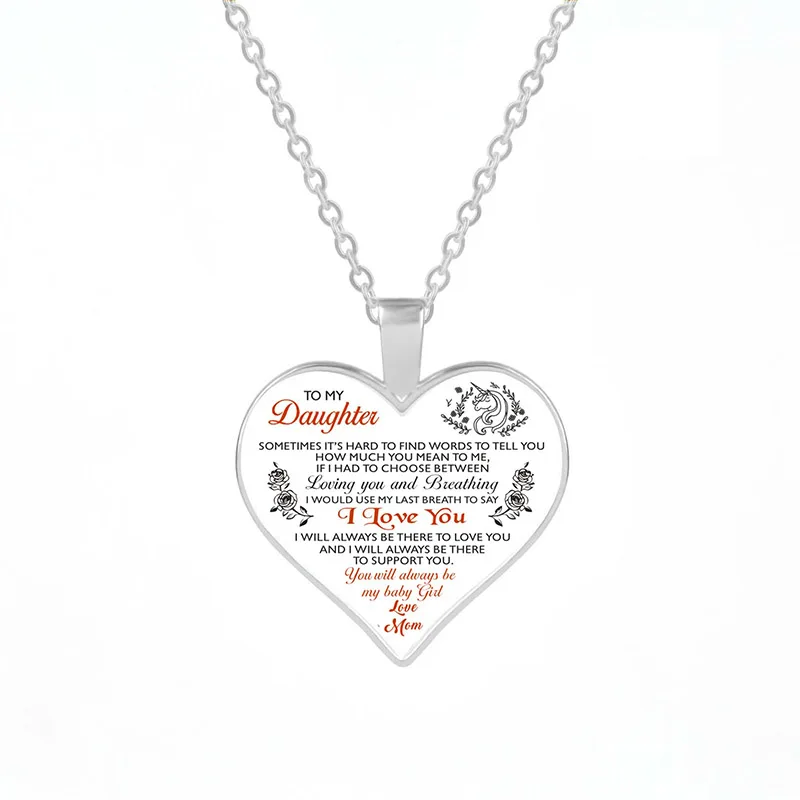 Милое ожерелье с подвеской в виде сердца единорога для моей дочери, Вдохновляющие ожерелья с буквенным принтом для женщин и девочек, подарок на день рождения