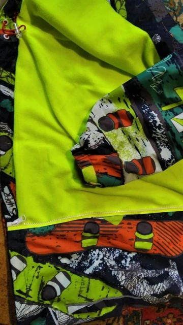 ветровка на высоте, даже не ожидала. яркий флис внутри. капюшон отстегивается. материал верха очень классный. доживем до весны - попробуем в деле.