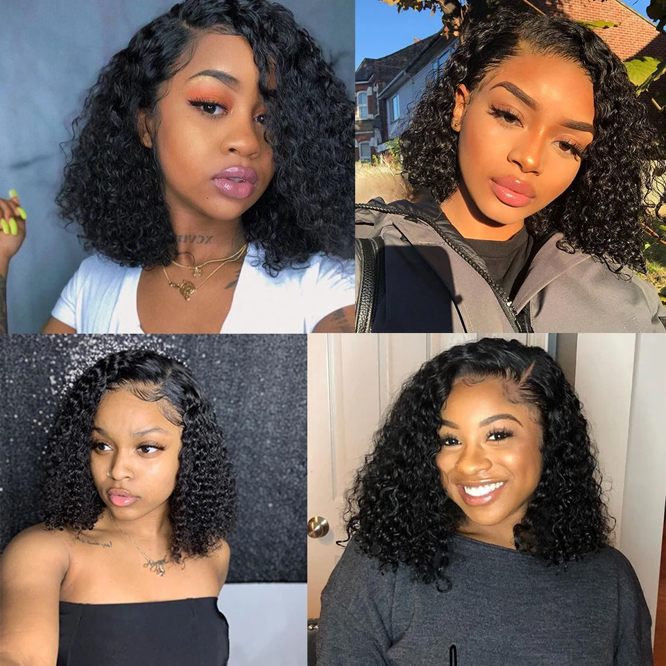 Малазийские парики из человеческих волос 13X4 с короткими вьющимися волосами Боб для чернокожих женщин, парик с глубокими вьющимися волосами Remy, предварительно выщипанные Детские волосы