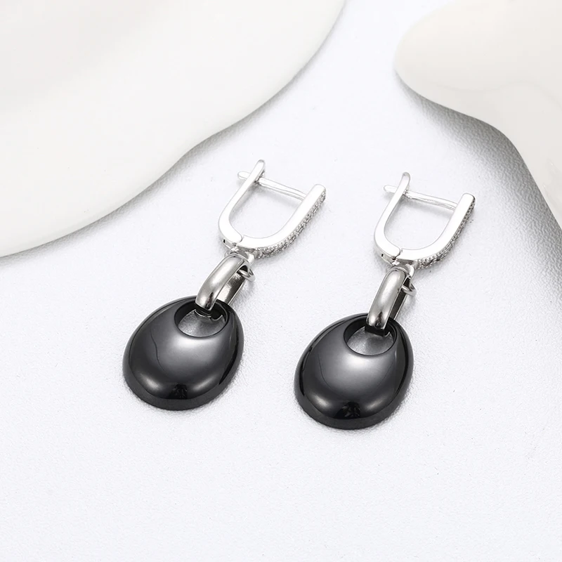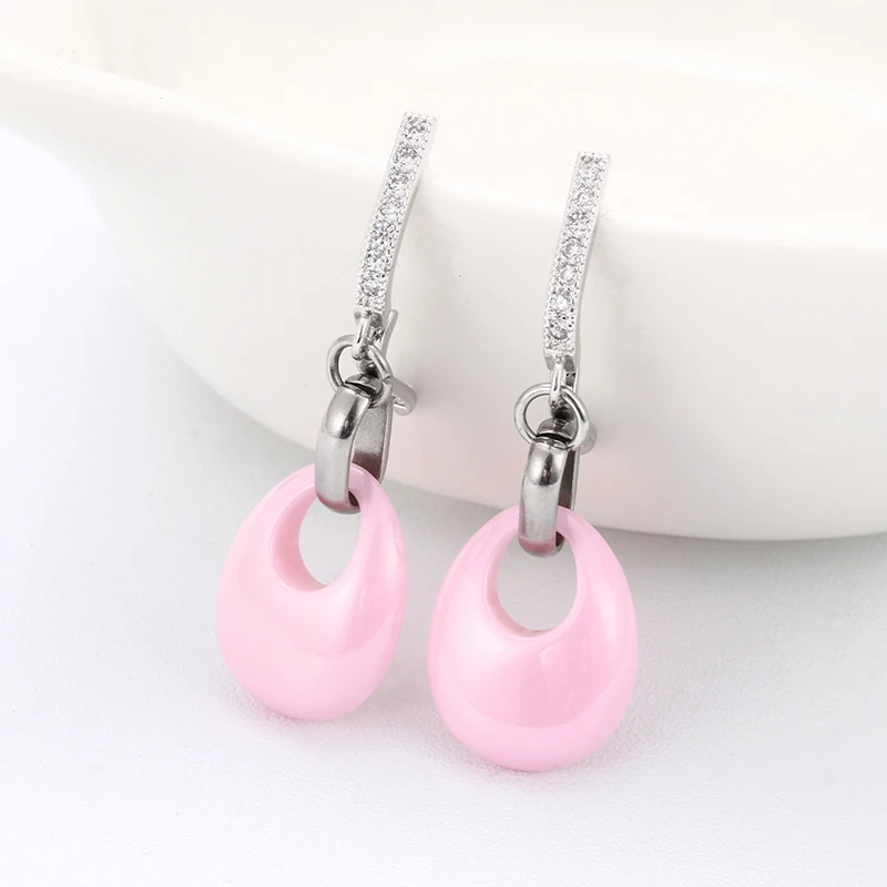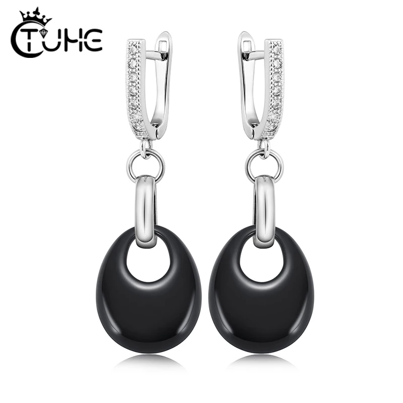 Серьги-гвоздики из настоящей керамики женские, элегантные свадебные вечерние ювелирные украшения с гладкой керамикой в форме капли воды, черный белый розовый синий