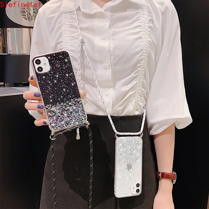 Прозрачный блестящий чехол с ремешком на шею для Samsung A52 5G A72...