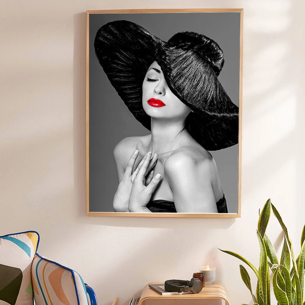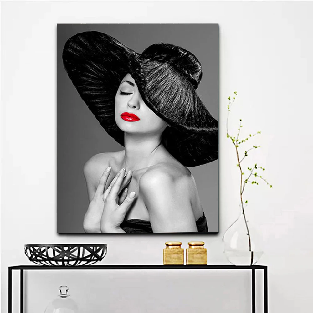 Красивая женщина с красными губами настенное Искусство Холст Плакат Картина плакаты и принты настенные картины для домашнего декора (без рамки)