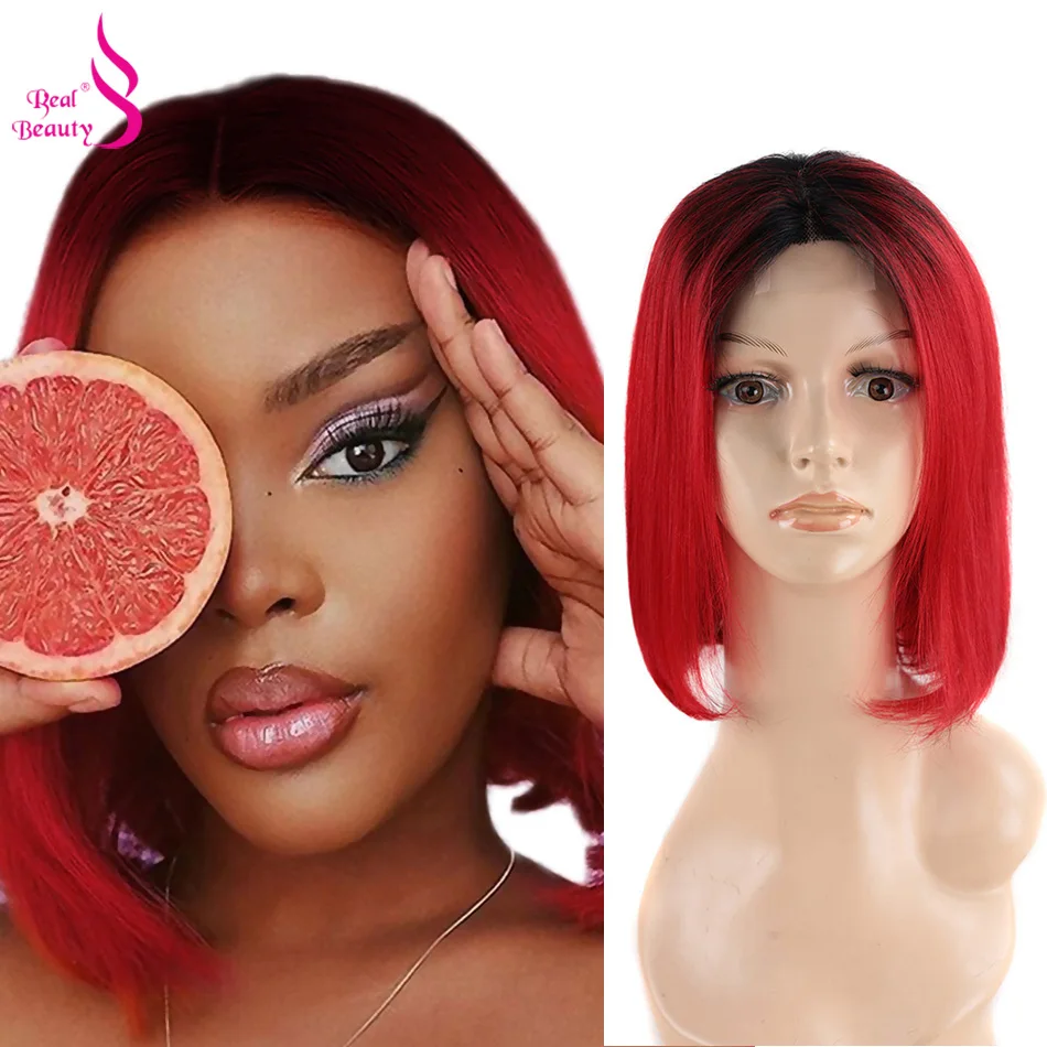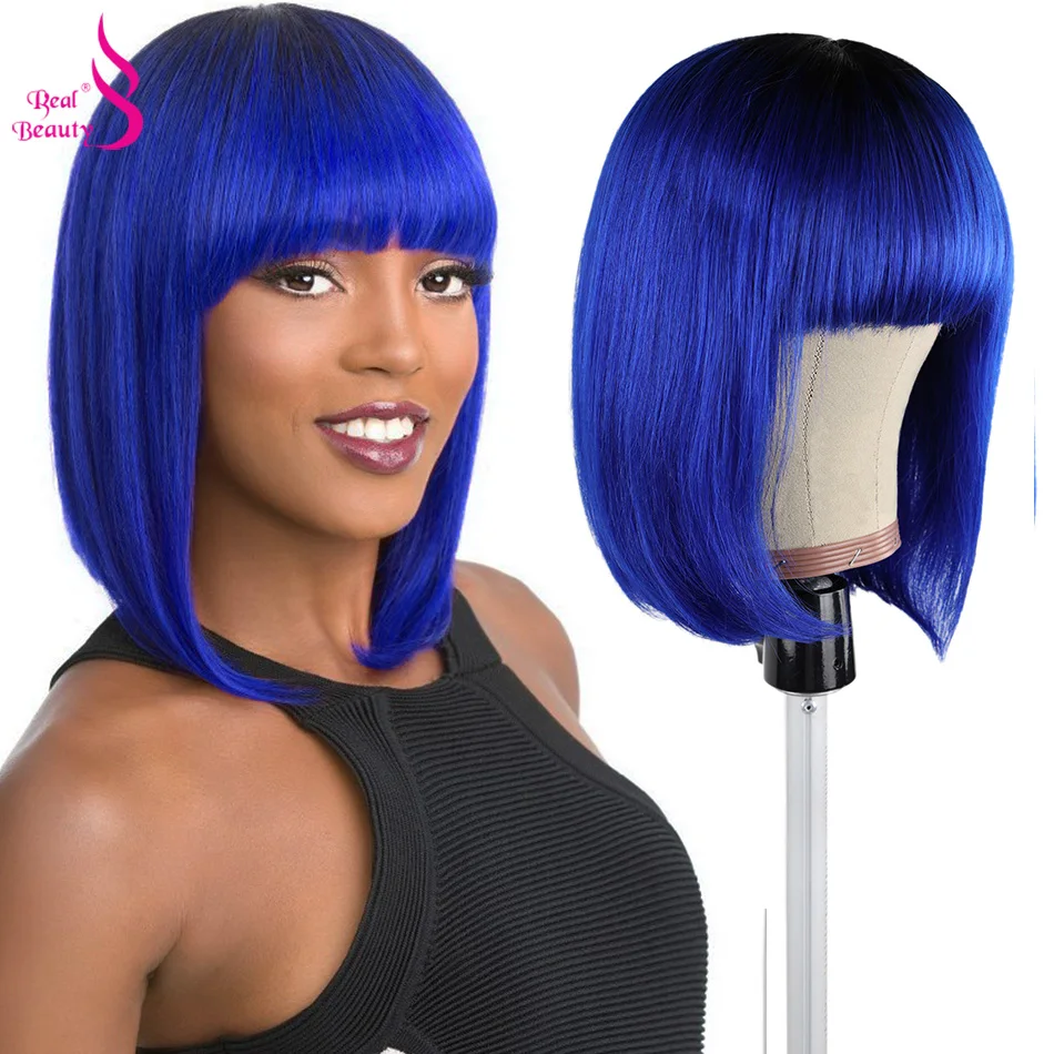 Настоящая красота Омбре прямые человеческие волосы парик с челкой Remy короткий боб парик хайлайтер Омбре кружевной закрывающий парик синий блонд фиолетовый