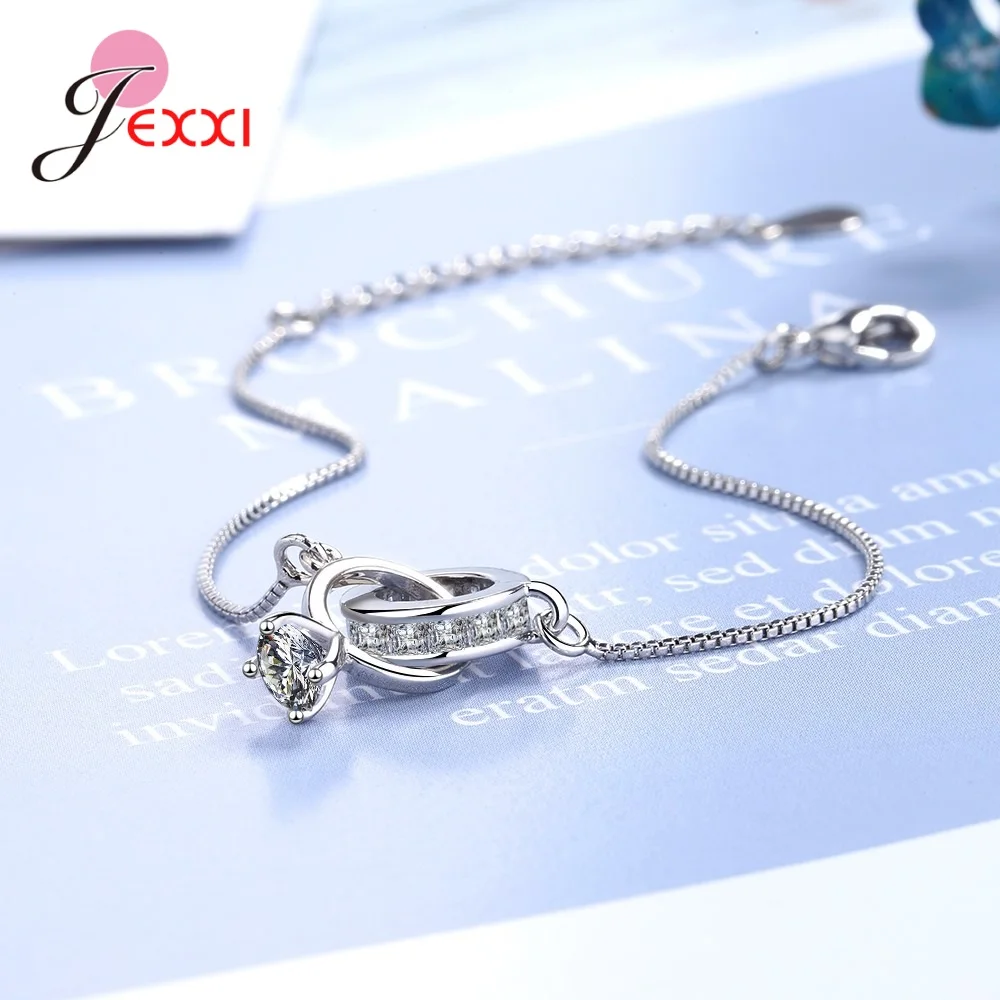 Женский браслет из двух колец с фианитами, ювелирное украшение для ...
