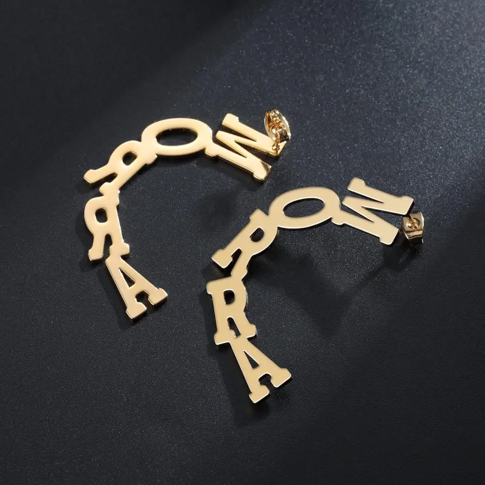 Персонализированные именные серьги, изготовленные на заказ именные пирсинг серьги Модные ювелирные изделия из нержавеющей стали имя изгиба серьги женские подарки