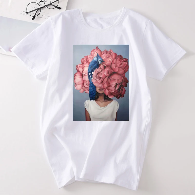 Новинка 2020, женские футболки, повседневные топы с цветочным принт...