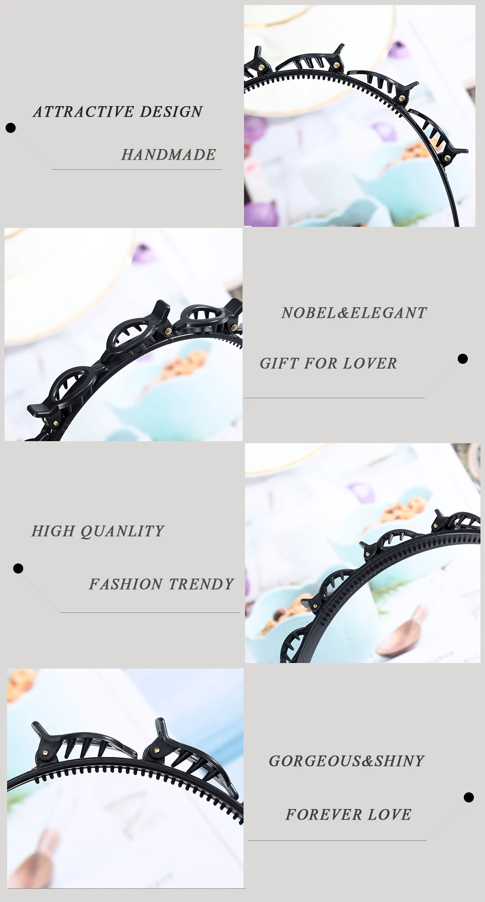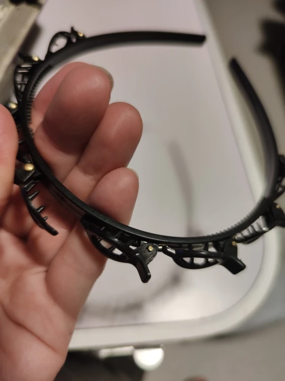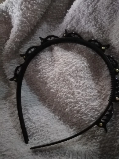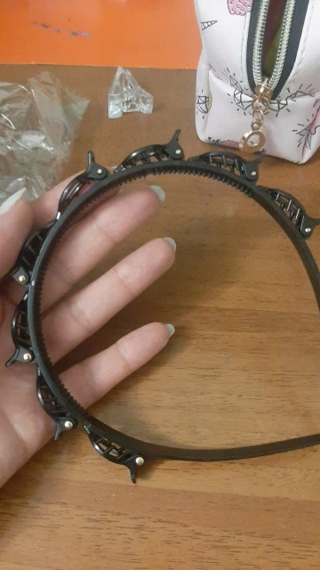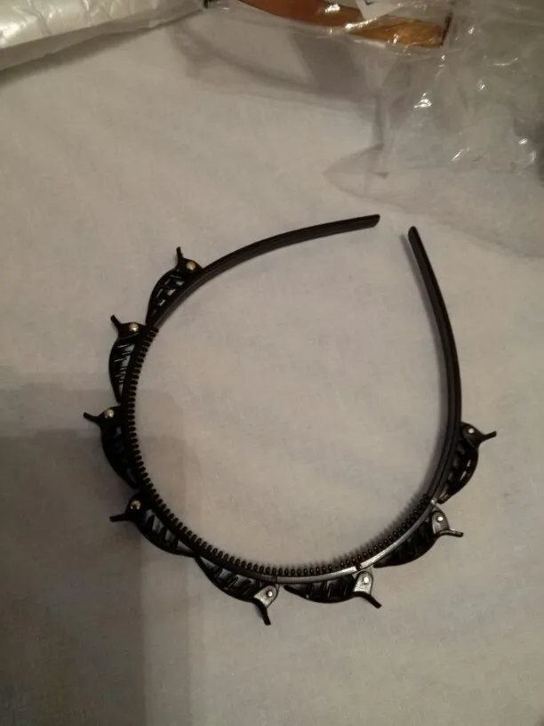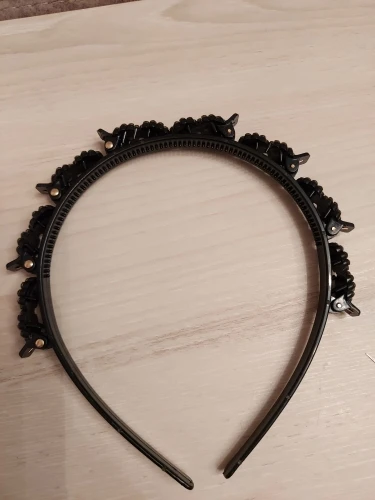 доставка в Ярославль примерно месяц, пришло в одном пакете с другими заказами, все целое, без повреждений, пластик нормальный, цвет черный, задумка наверное неплохая, но для неё надо иметь хороший объем волос и именно впереди, чтобы хорошо держалось и было красиво, сам ободок держит хорошо