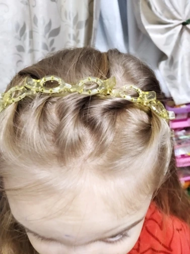 Интересный дизайн у этого ободка. Для ребёнка, то что надо, получается красивая причёска.