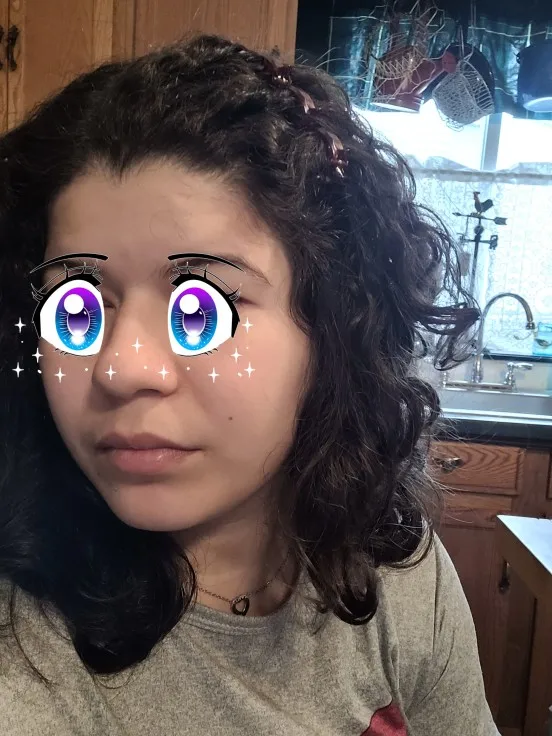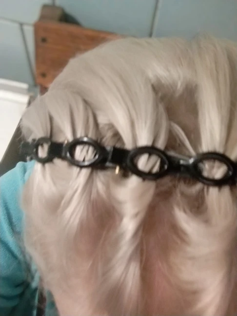 Заколки на обруче великоватые поэтому челка с них выподает.