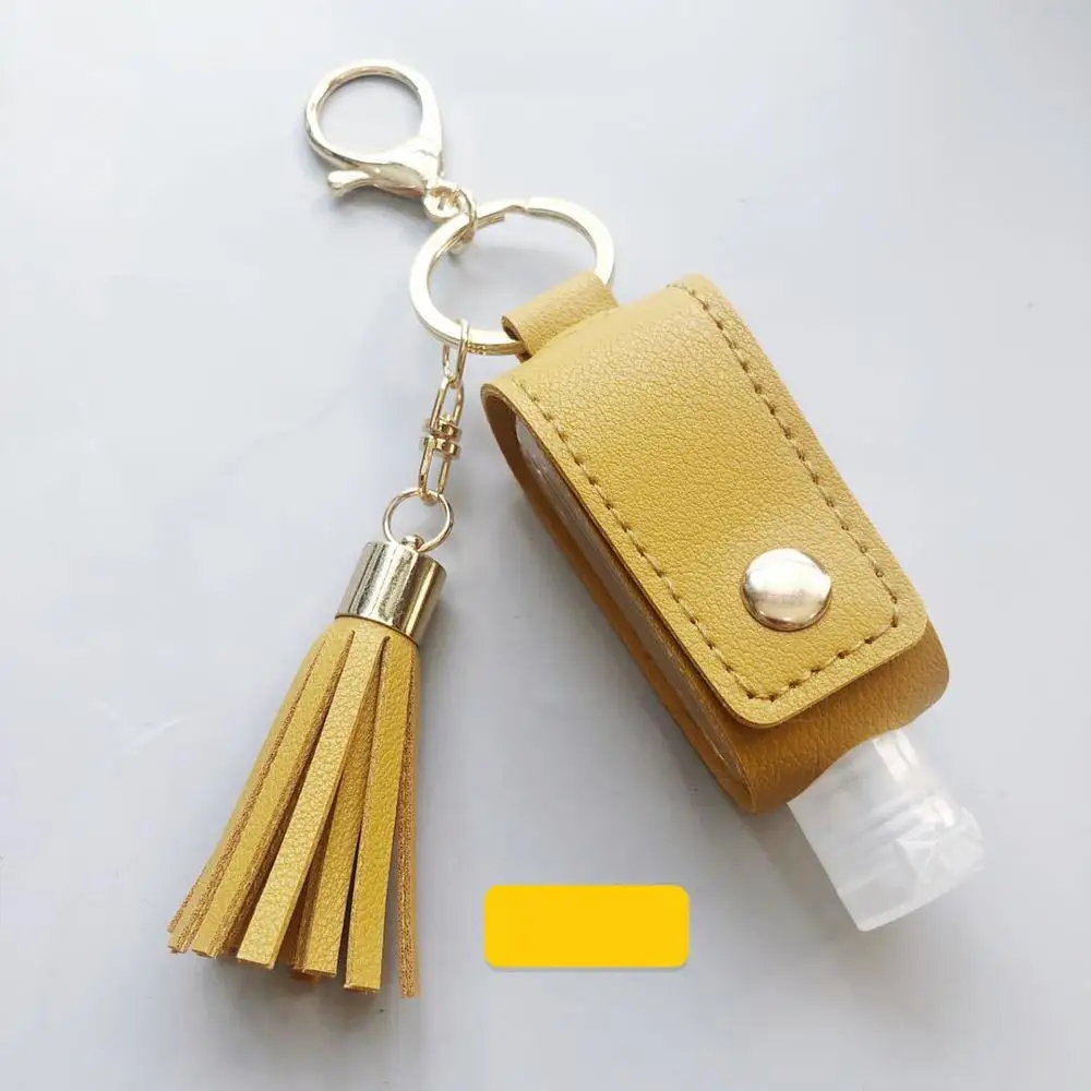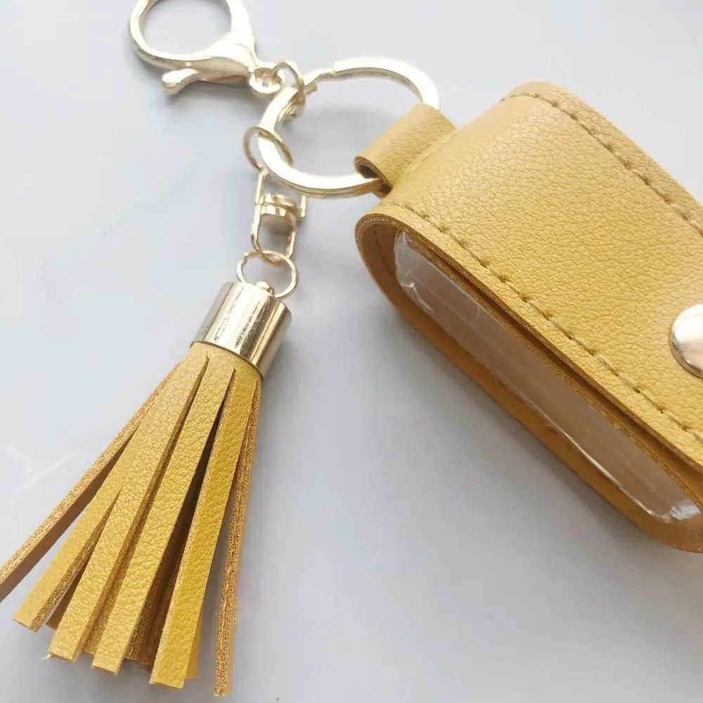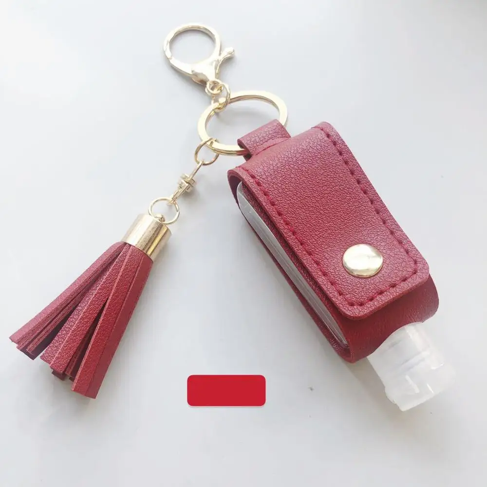 Пустая многоразовая бутылка 30 мл, герметичная пластиковая дорожная бутылка, портативная сжимаемая бутылка с кисточкой, кожаный держатель для ключей
