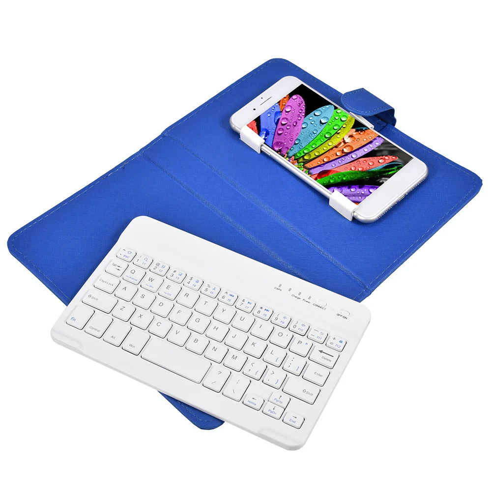 Стильный чехол-книжка с подставкой 2 в 1 + Съемная конструкция клавиатуры 3,0 с Bluetooth предназначена для поддержки мобильного телефона, чтобы вы могли фокусироваться на работе, чтении, просмотре видео, набрав, как на обычном компьютерном ноутбуке. Кроме того, защитный чехол защищает ваш мобильный телефон от царапин и поломки. Продукт подходит для сотового телефона Bluetooth 4,5-6,8 дюймов, включая телефоны Android, Windows и iOS. Особенности: Совместим с сотовыми телефонами Bluetooth 4,5-6,8 (ширина 6-9,5 см), включая телефоны Android, Windows и iOS. Легкий вес, компактный, легко носить с собой и обрабатывать. Съемный магнитный лоток для клавиатуры, чтобы превратить крышку клавиатуры в классический Чехол-портфель. Уникальный дизайн folio предотвращает появление царапин, обеспечивая легкий доступ ко всем портам. Встроенная подставка надежно удерживает руки вашего мобильного телефона под идеальным углом для ввода или просмотра фильмов. Защитный внешний вид из высококачественной искусственной кожи обеспечивает прочную, прочную, противоударную подушку при падении, а пластиковая клавиатура-Пыленепроницаемость, устойчивость к царапинам, высокая производительность и высокое качество. Характеристики: Цвет: синий, розовый, синий (на выбор) Тип: рукав для клавиатуры Bluetooth Размер: прибл. 23*14*3 см/0,9*0,6*0,1 дюймов Стиль: раскладушка Материал: из искусственной кожи чехол, пластиковая клавиатура Стиль: деловой Совместимость: совместимость с сотовыми телефонами Bluetooth 4,5-6,8 (ширина 6-9,5 см), включая телефоны Android, Windows и iOS. Bluetooth: 3,0 + стандарты HS Сертификация: BQB, FCC, CE, ROHS Эффективное расстояние: до 10 м (открытое пространство) Модуляция: 2,4 ГГц Рабочее напряжение: 3,0-5 В Рабочий ток: <4.0ма Ток в режиме ожидания: 20UA Ток сна: <2μA Ток заряда: ≥ 100 мА. Время работы в режиме ожидания: 100 дней Интенсивность кнопки: 80 ± 10 г Ключевая жизнь: до 5 миллионов раз. Рабочая температура: -10 - + 55 ℃ Влажность: 20% -50% Интерфейс: порт Micro USB Язык: английский Индикатор питания Светильник: Красный светильник в режиме on - Charging state; Светильник off - Full charged; Светильник Flash-низкое состояние электроэнергии, чтобы напомнить вам о зарядке Вес посылки: 334 г Посылка: 1 x Bluetooth клавиатура и чехол 1 х USB кабель