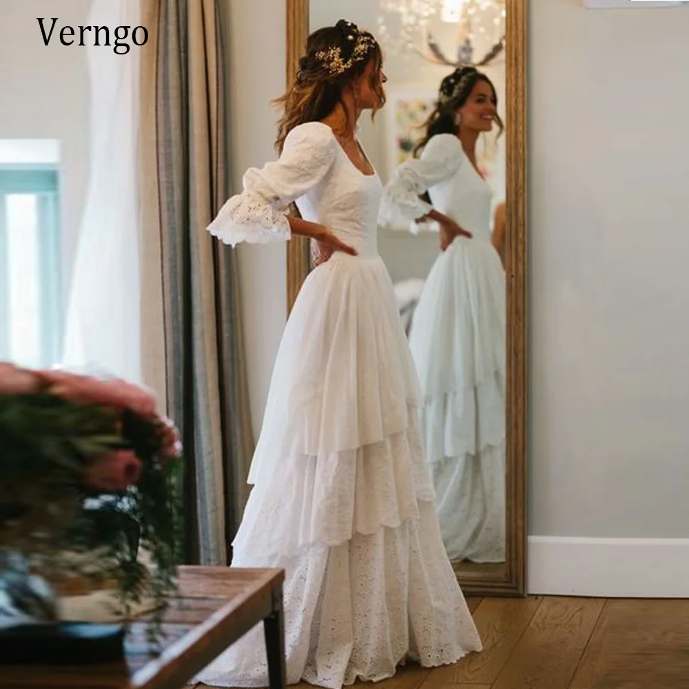 Свадебное платье в деревенском стиле бохо, винтажные богемные кружевные трапециевидные платья невесты, многоярусные Свадебные платья принцессы с рукавами-фонариками, деревенские платья