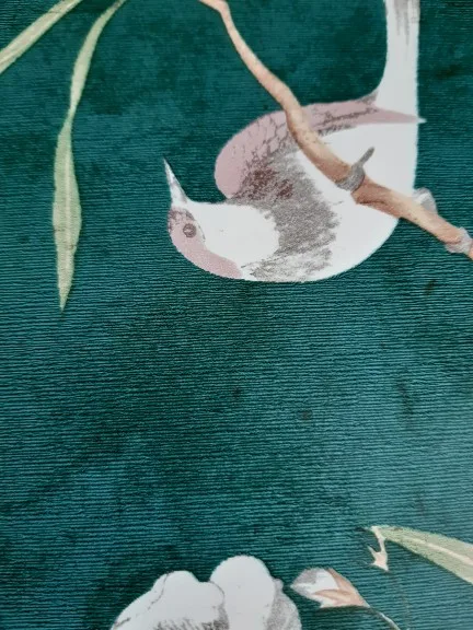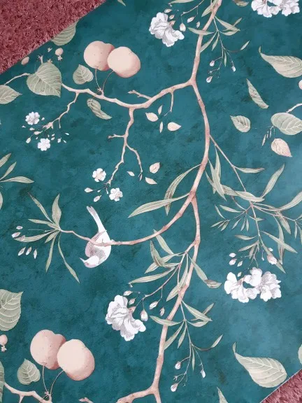 доставка в МО быстрая, 26.04 - 13.05 .трек отслеживался. упаковано надёжно, картонная туба и пупырка. сама плёнка отличная, зелёный фон выполнен с эффектом тиснения, за счёт чего создаётся глубина, рельеф. рисунок немного уходит в жёлтый тон, выглядит винтажно. с продавцом не общалась - не было необходимости.