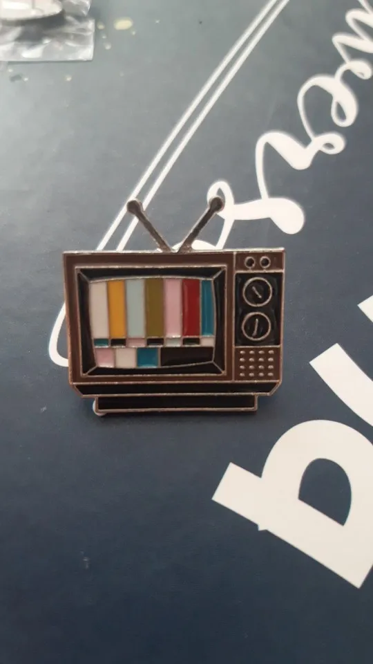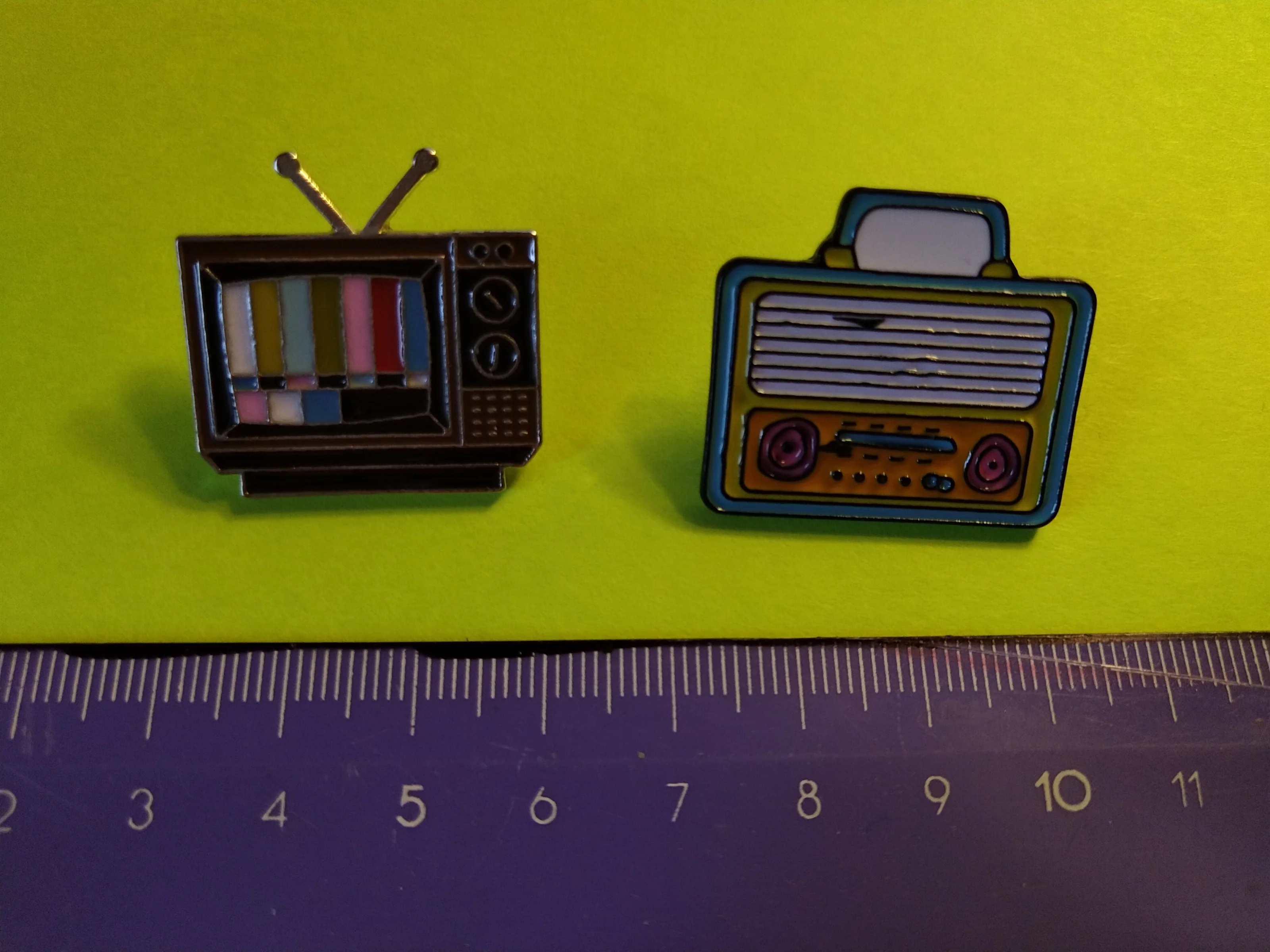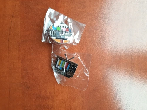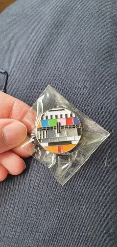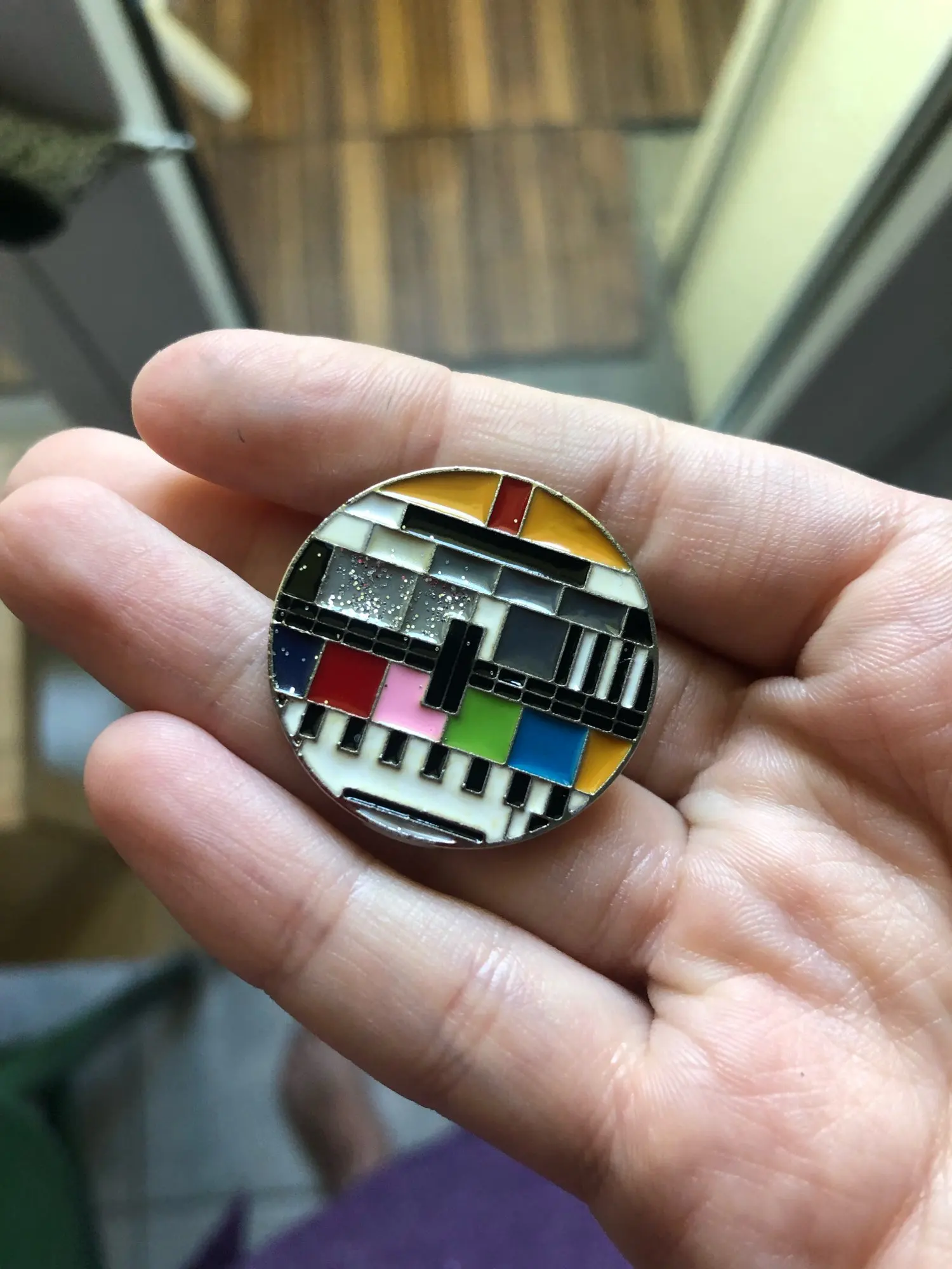блёстки ожидаемо оказались не только на "белом шуме", но и по всему значку. но это его не портит, он отличный, пошёл в качестве маленького подарка бывшему тележурналисту