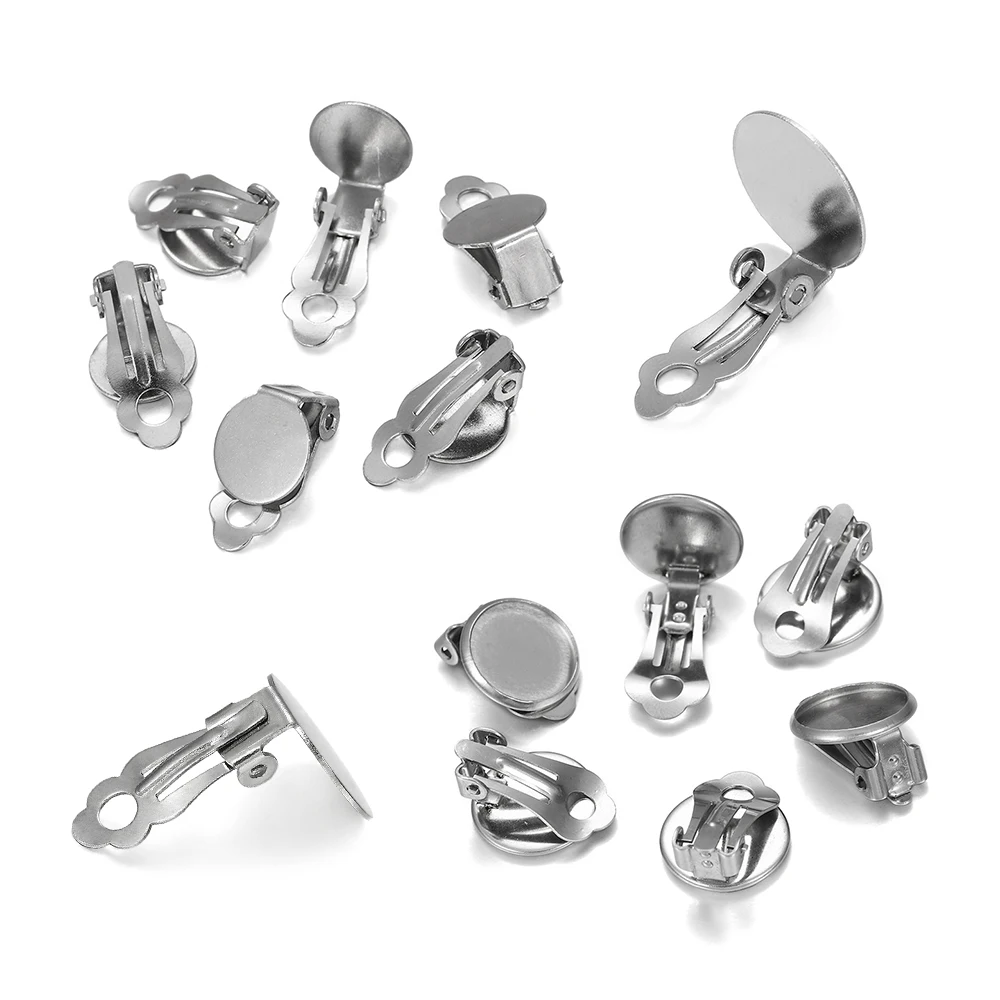 10 шт./лот 8-14 мм нержавеющая сталь круглый плоский зажим для ушей пустая основа Кабошон ободок лоток серьги клипсы для DIY ювелирных изделий