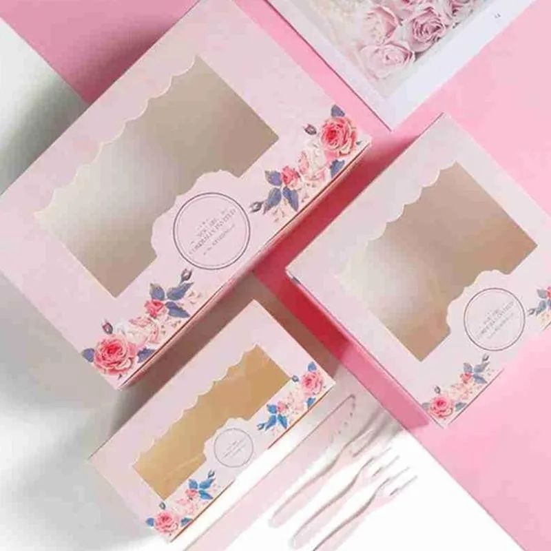 1 шт. 3 размера Diy подарочная упаковка с окном розовый Печатный торт десерт упаковка Рождественские Свадебные домашние вечерние упаковка для кексов коробка