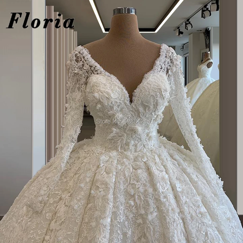 Женское свадебное платье, с V-образным вырезом и цветочной аппликацией