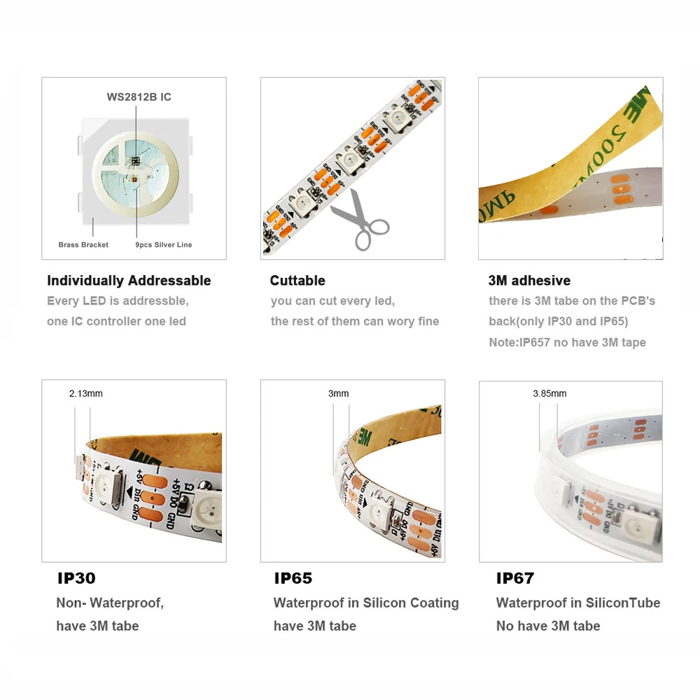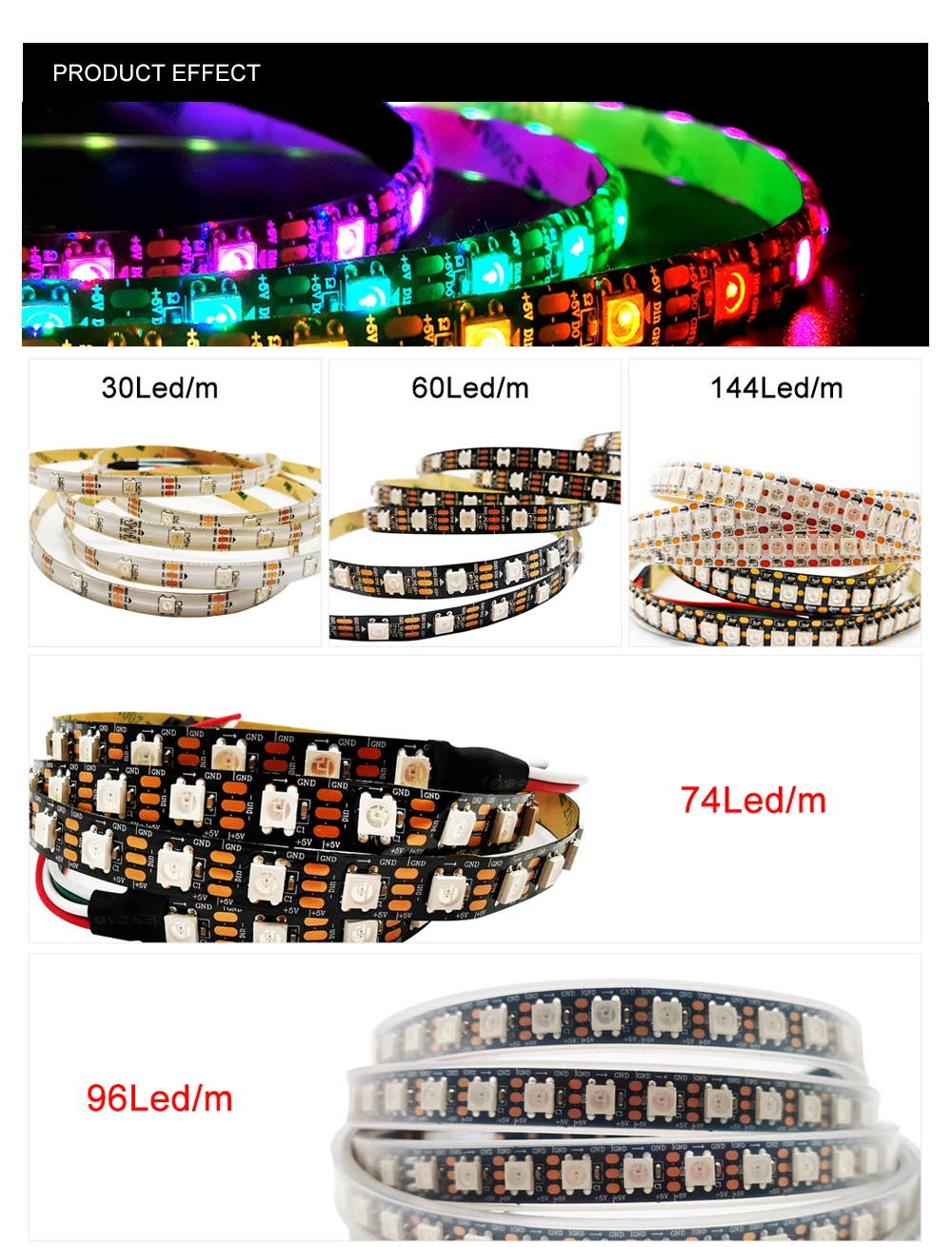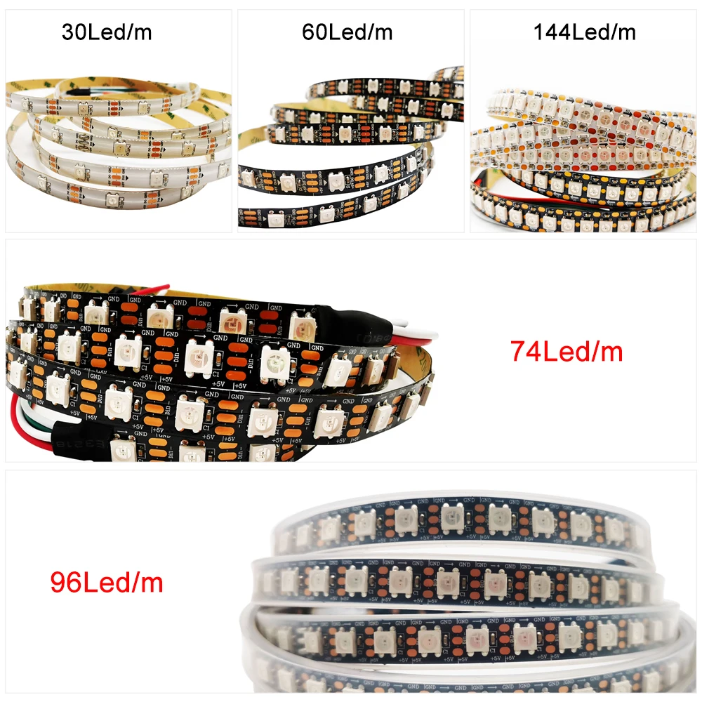 Светодиодная лента WS2812B WS2812 , индивидуально адресный свет , черная белая печатная плата , 3060144led , водонепроницаемая IP306567, 5 в пост. Тока