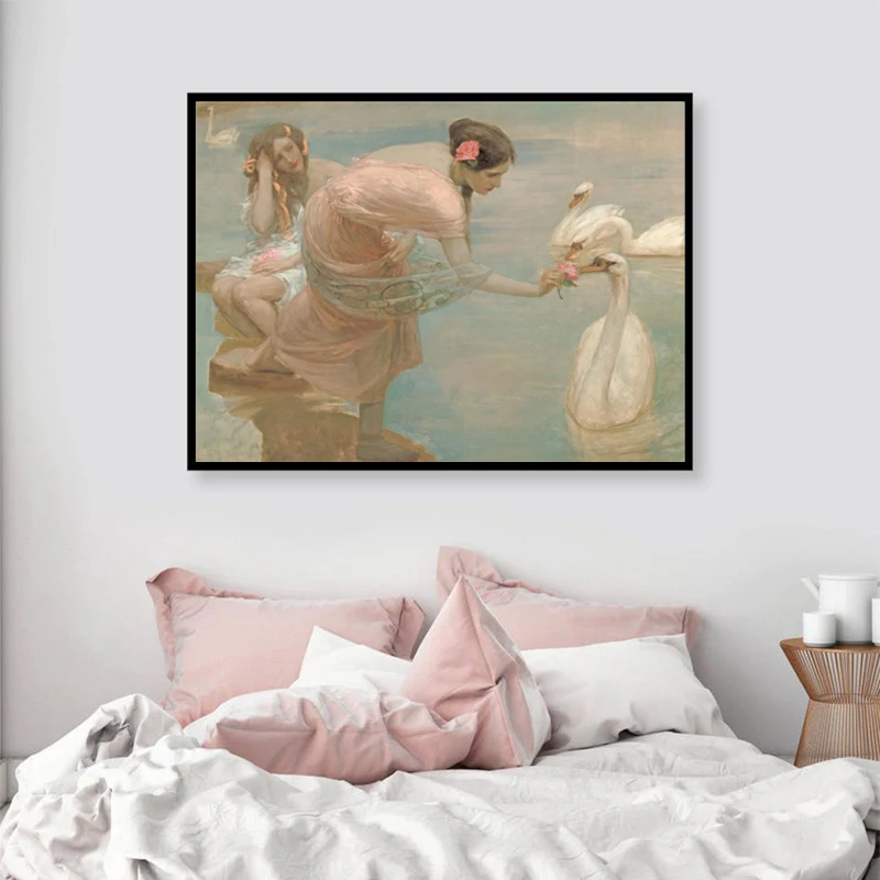 PurposeLovely Ladies and Swans Art Painting Picture Wall Decor