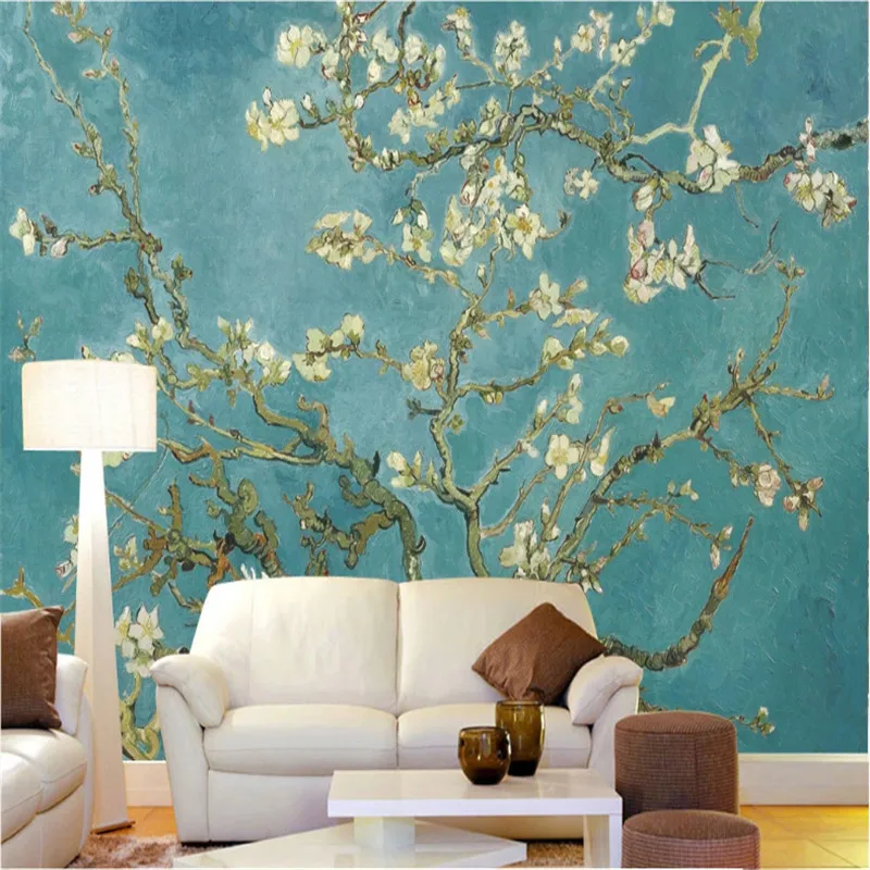 Ван Гог известная картина маслом Цветущая Слива 3D фото обои для гостиной Ретро цветок и птица настенная бумага домашний декор