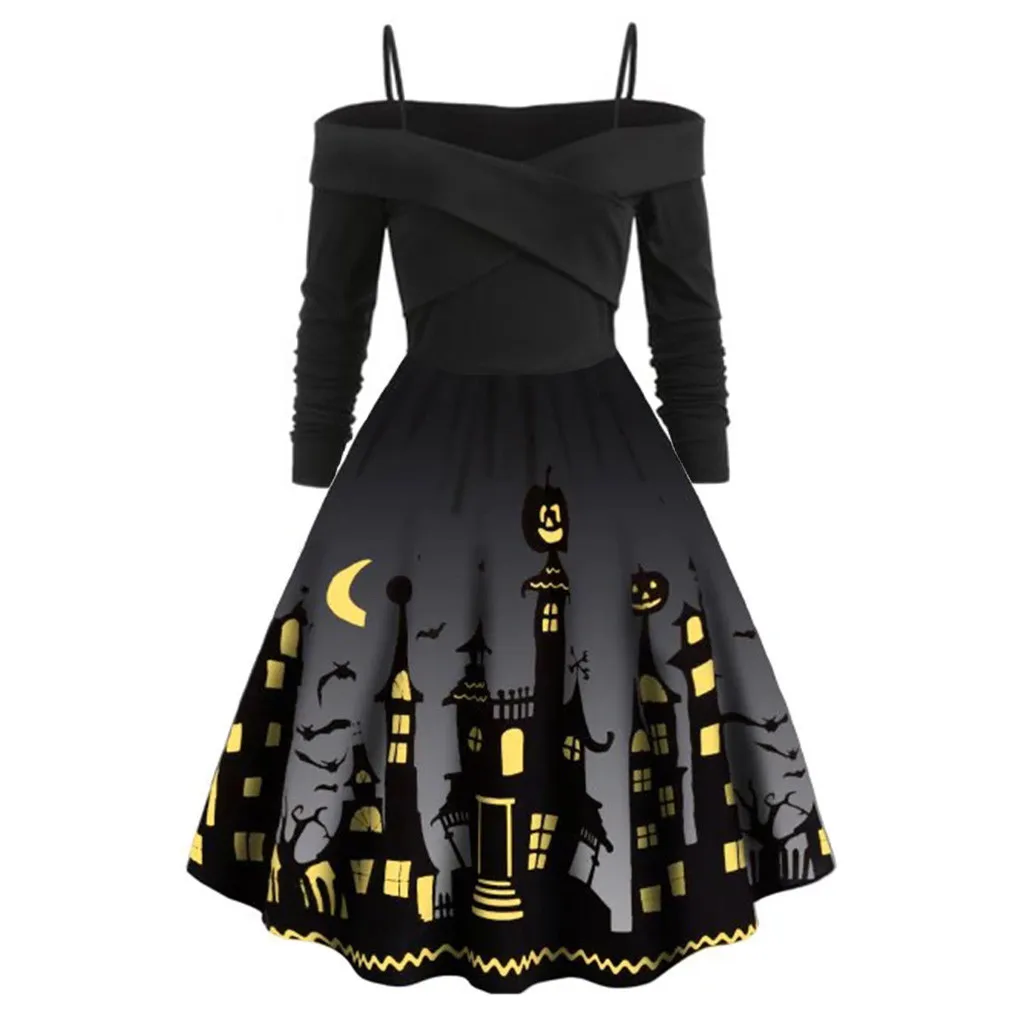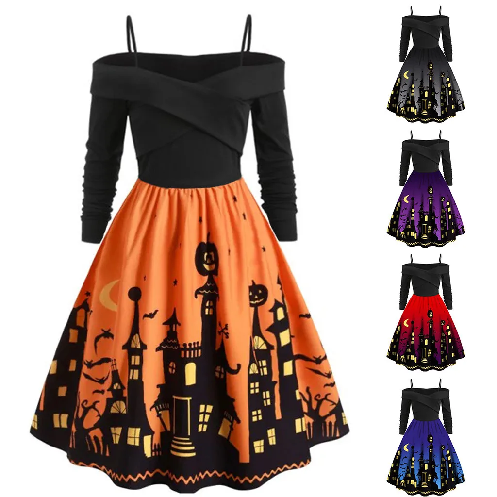 Женское сундук с тыквой Вечерние Платье с принтом для девочек на Хэ...