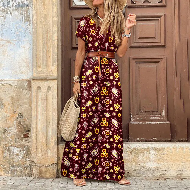 Женское платье макси в стиле бохо, с принтом пейсли, с коротким рук...