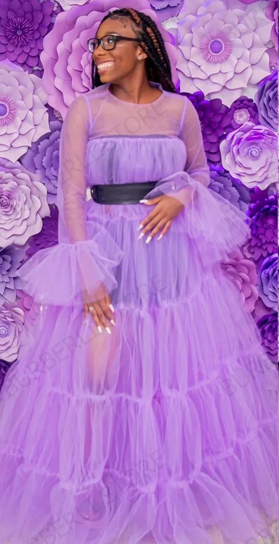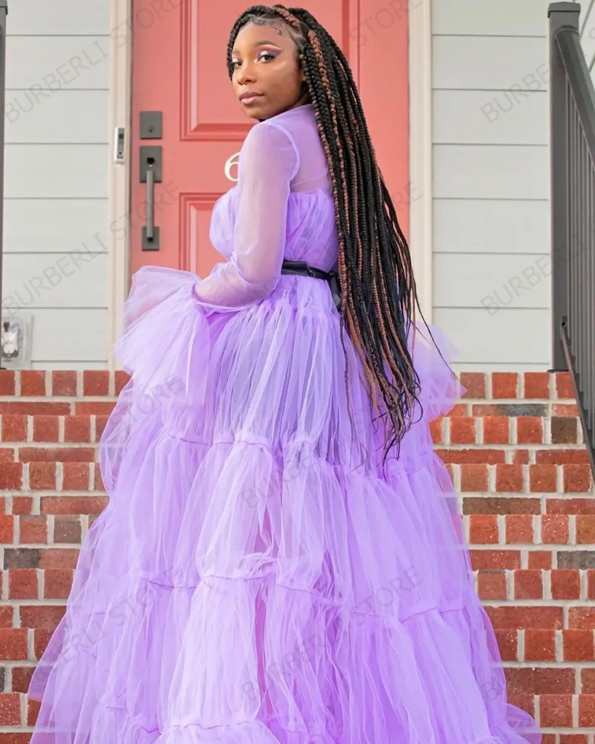 Женское ТРАПЕЦИЕВИДНОЕ ПЛАТЬЕ, длинное платье лавандового цвета с пышными длинными рукавами, платье для выпускного вечера