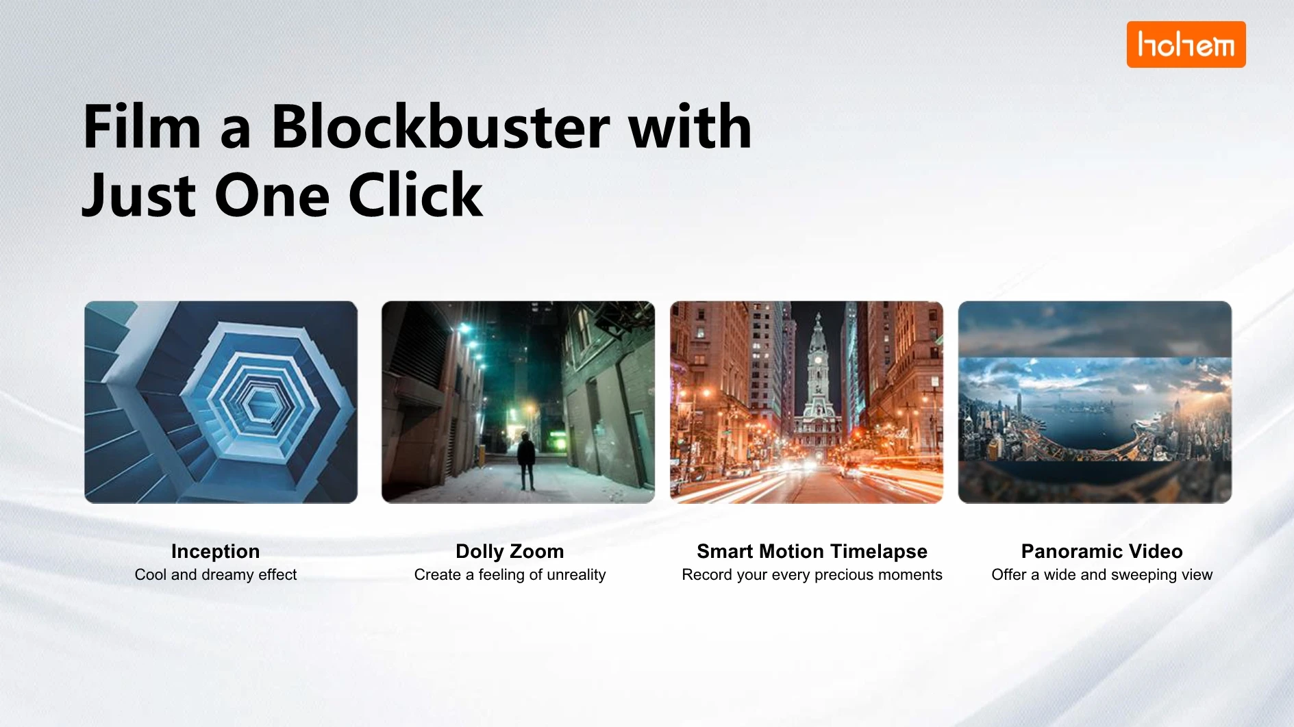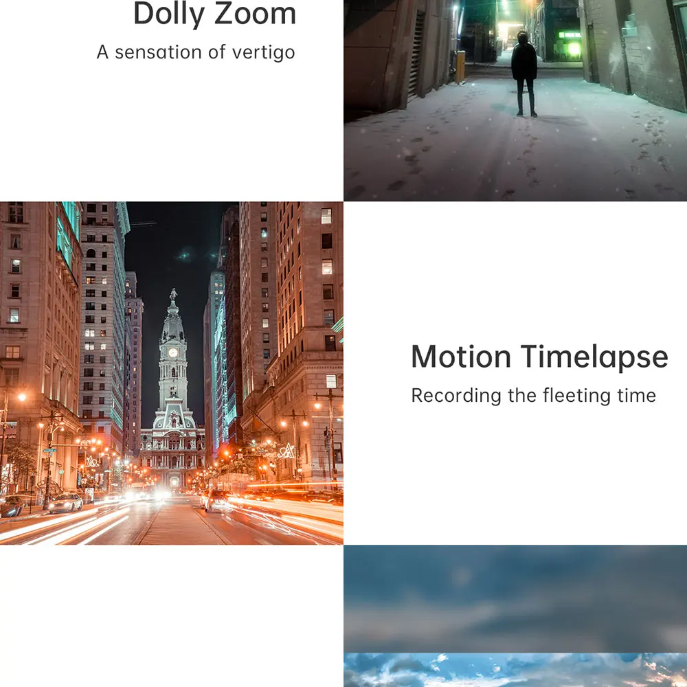 5.【 Приложение "Hohem Pro" для Movie Moment Mode】: Веселитесь с видео шаблоном через приложение "Hohem Pro" в режиме moment всего одним щелчком мыши: Автоматическое создание, время движения, Долли зума, панорамный, в режиме реального времени режим красоты и фильтры