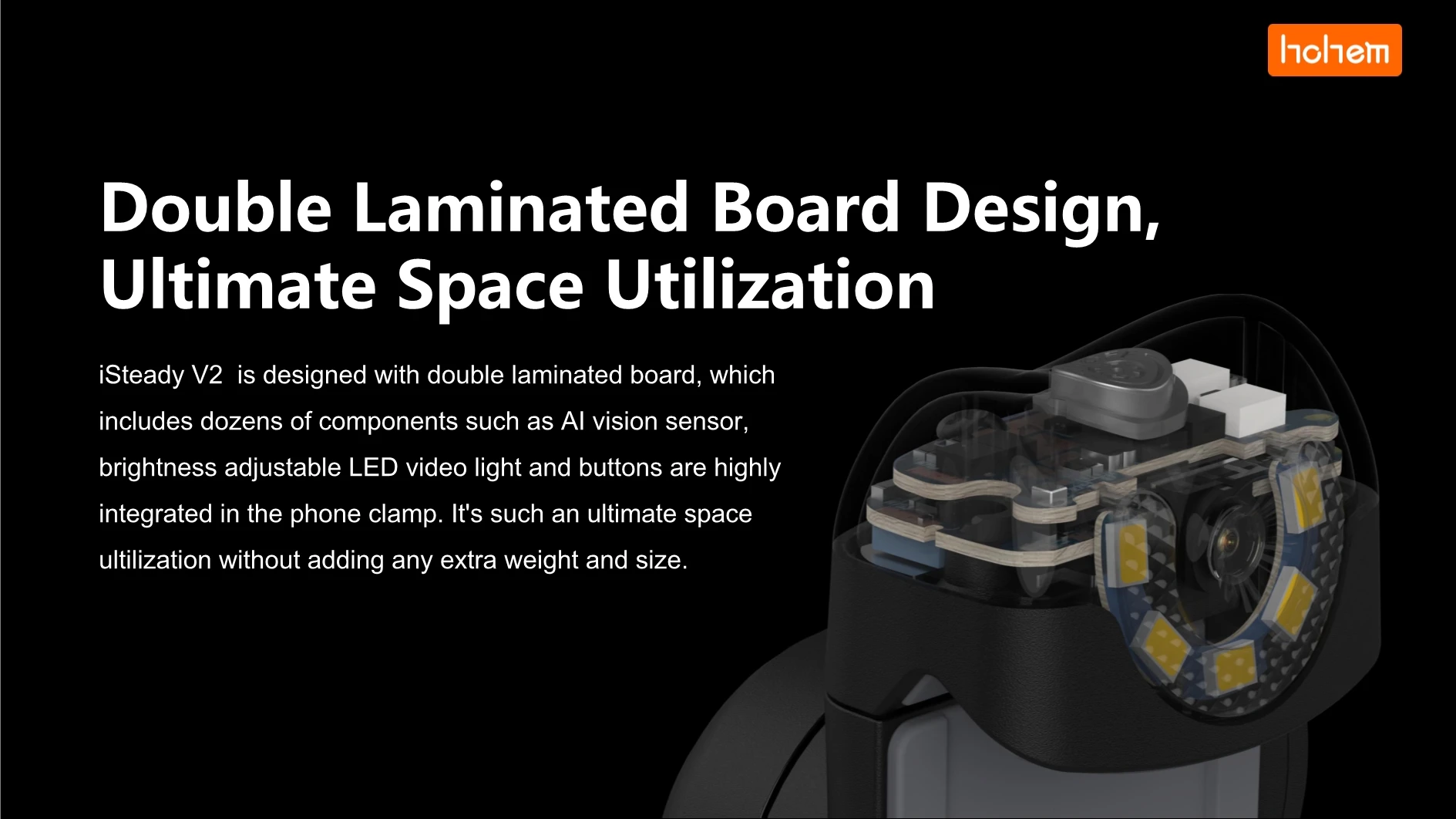 7.【Double Gelamineerd доска дизайн, Ultieme Ruimte Utilization】iSteady V2 является ontworpen с двойной gelamineerd доска, omvat tientallen componenten как AI видеосенсор, яркость instelbaar светодиодный видео свет RU кнопки zijn zeer geïntegreerd в de телефон klem. Het-это zo'n een ultieme ruimte ultilization zonder toevoeging van extra gewicht en grootte.