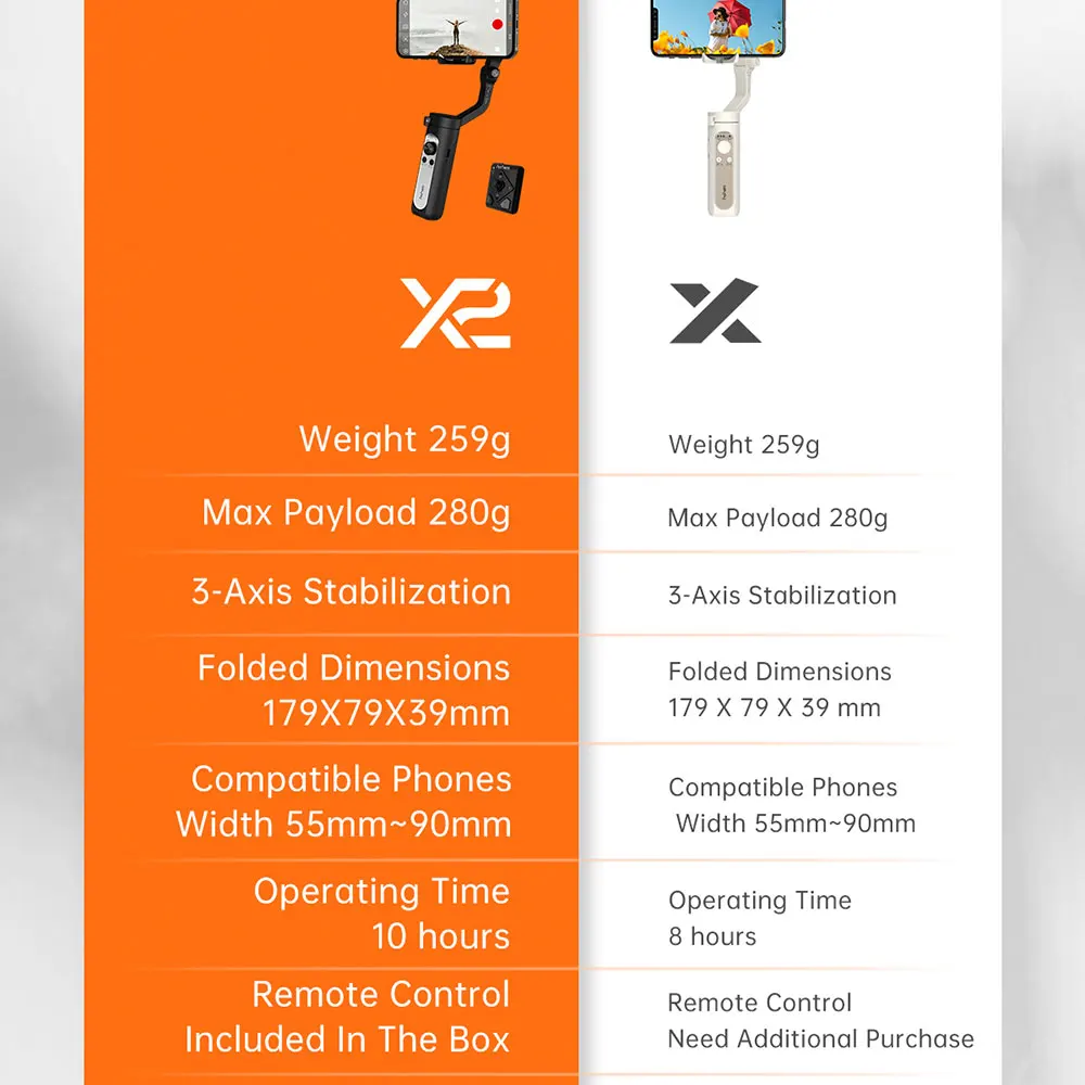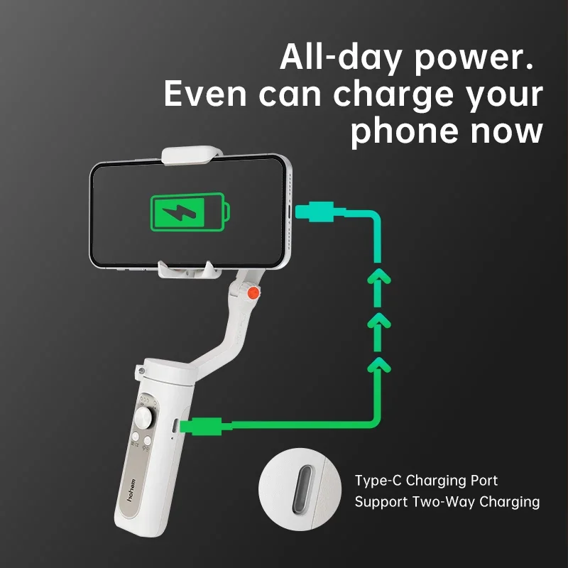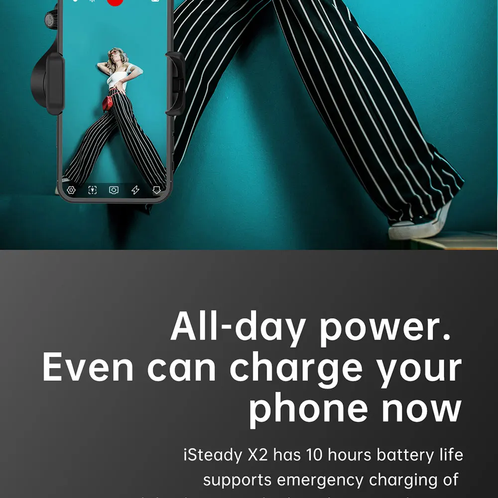 7.【 12h питание в течение всего дня: даже можно заряжать телефон сейчас: iSteady X2 имеет 10 часов работы от батареи, поддерживает экстренную зарядку мобильных телефонов и других электронных устройств.